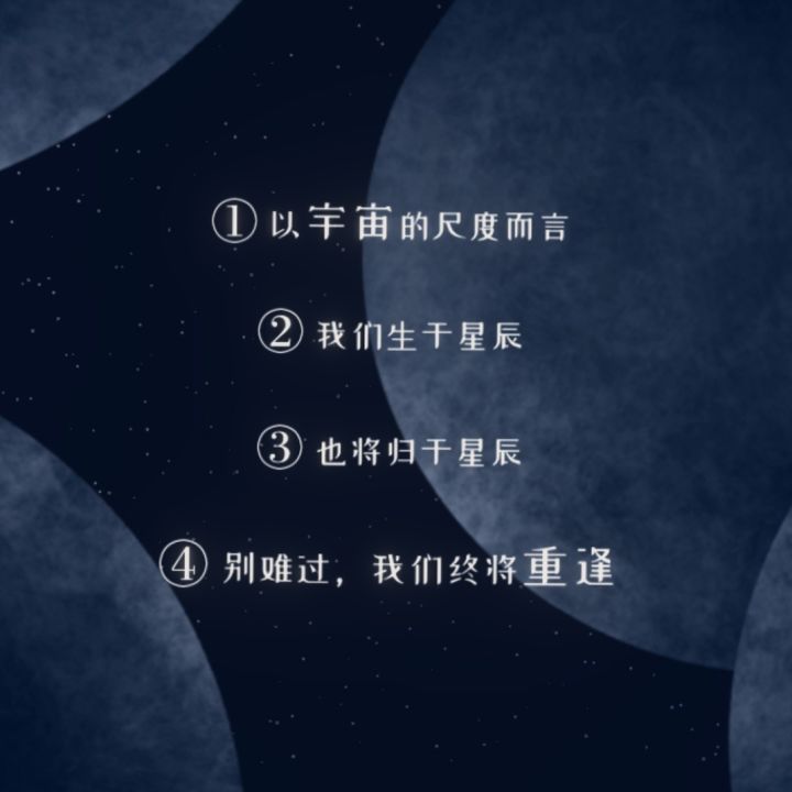 以宇宙的尺度而言,我们皆生于星辰,必将回归星辰,别难过,我们终会相遇。