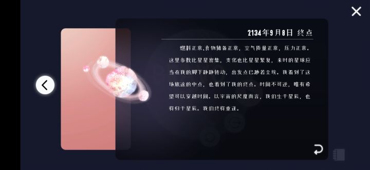 背景音乐很治愈的,操作也比较简单,闲暇时间玩玩还是比较推荐滴,游戏里有亲情的故事背景(但不占主要,想看还是要自己退出去日记里面查看的),父亲的爱,女儿的传承,挺不错的,还有就是这种星空,很喜欢,个人感觉挺精致的,还有每颗星球的解读,科普很棒,很治愈,希望故事性再强一点,关卡多一点吧