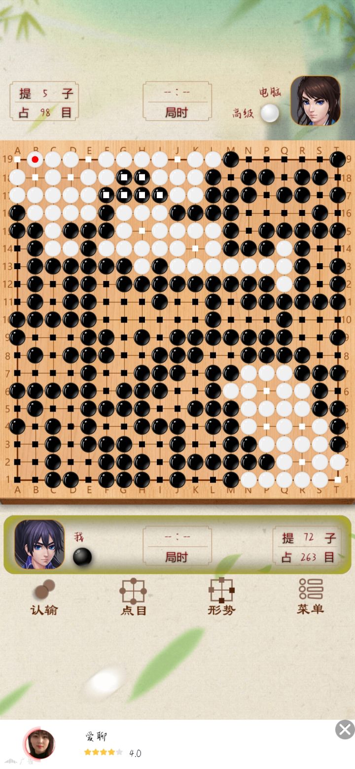 垃圾玩意bug多的一批,复盘缺棋就不说了,在线对局时,老出现自己目数变化,他有些地方明明是活局他就给你判死,这个我真的很无语,只算了子数没有算我那块的目数?希望官方能不能改进一下。