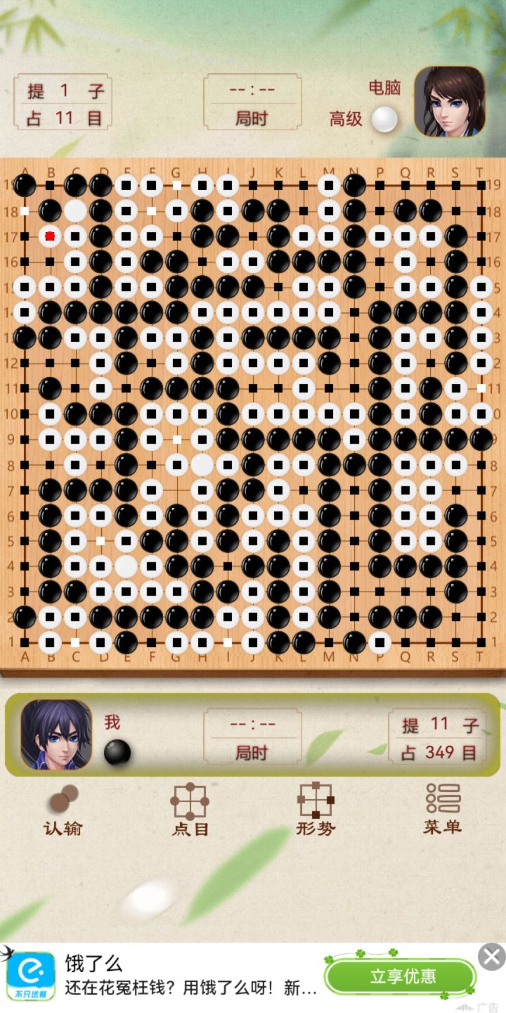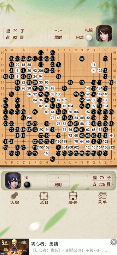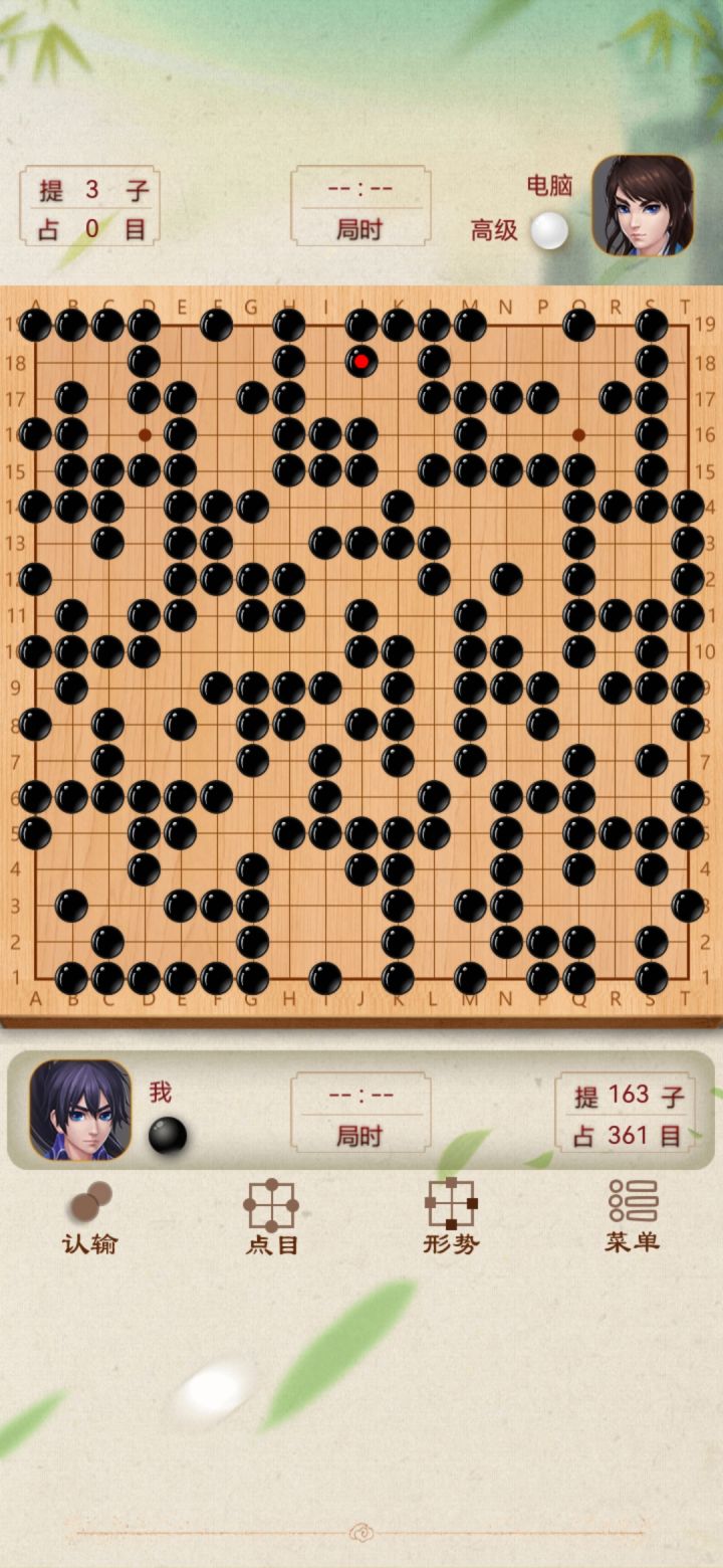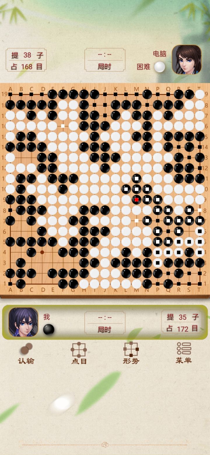 困难模式下,人机会优先补棋,先利用对角布局,骗人机过来征子,之后不去吃子,优先布局,等人机补完也差不多布好局了,慢慢收网就结束,算是ai上的漏洞[图片]