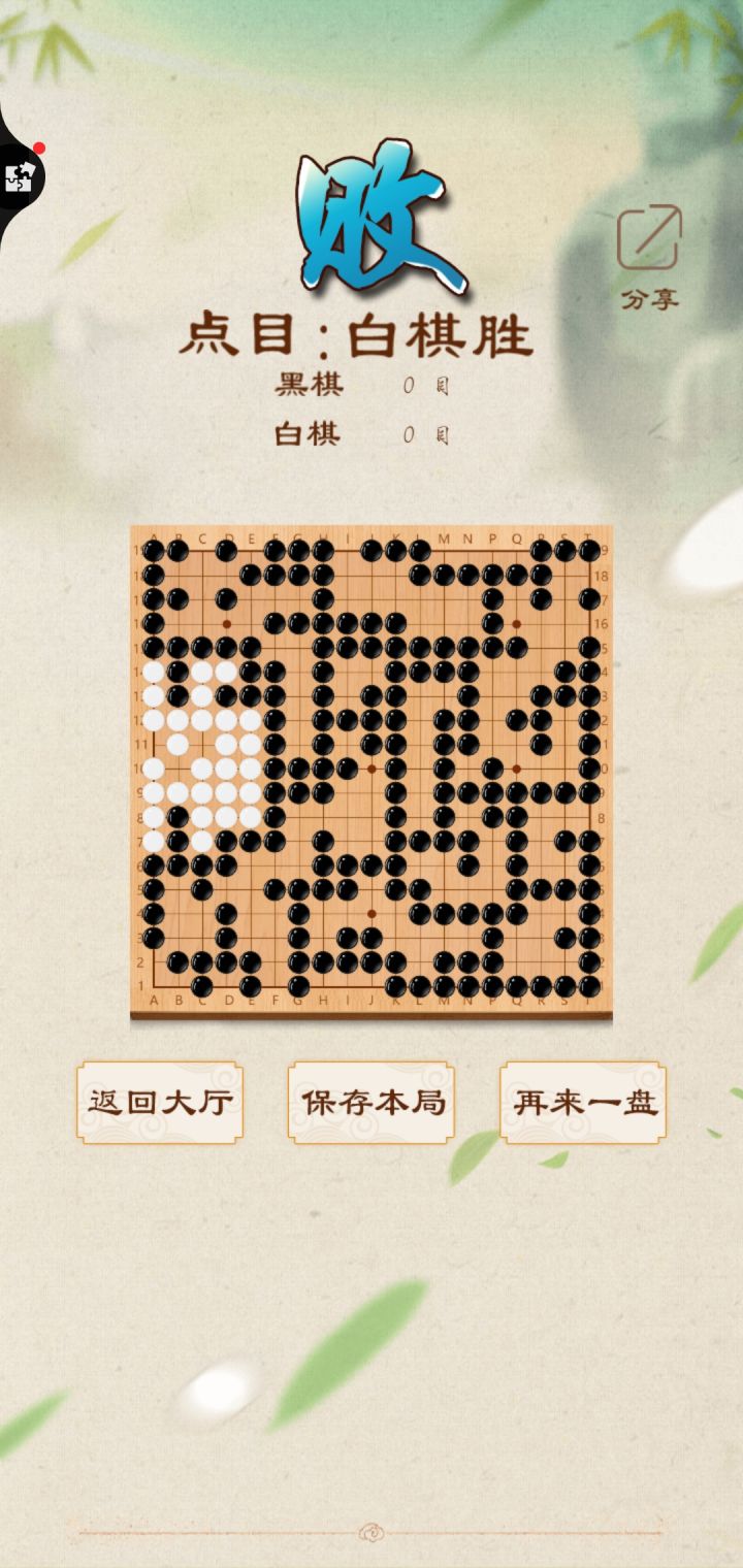 下到最后我和对手贼尴尬,点目算我输,就左边一小块算有目。这个都做不好软件干脆下架吧,浪费别人时间和感情干什么。