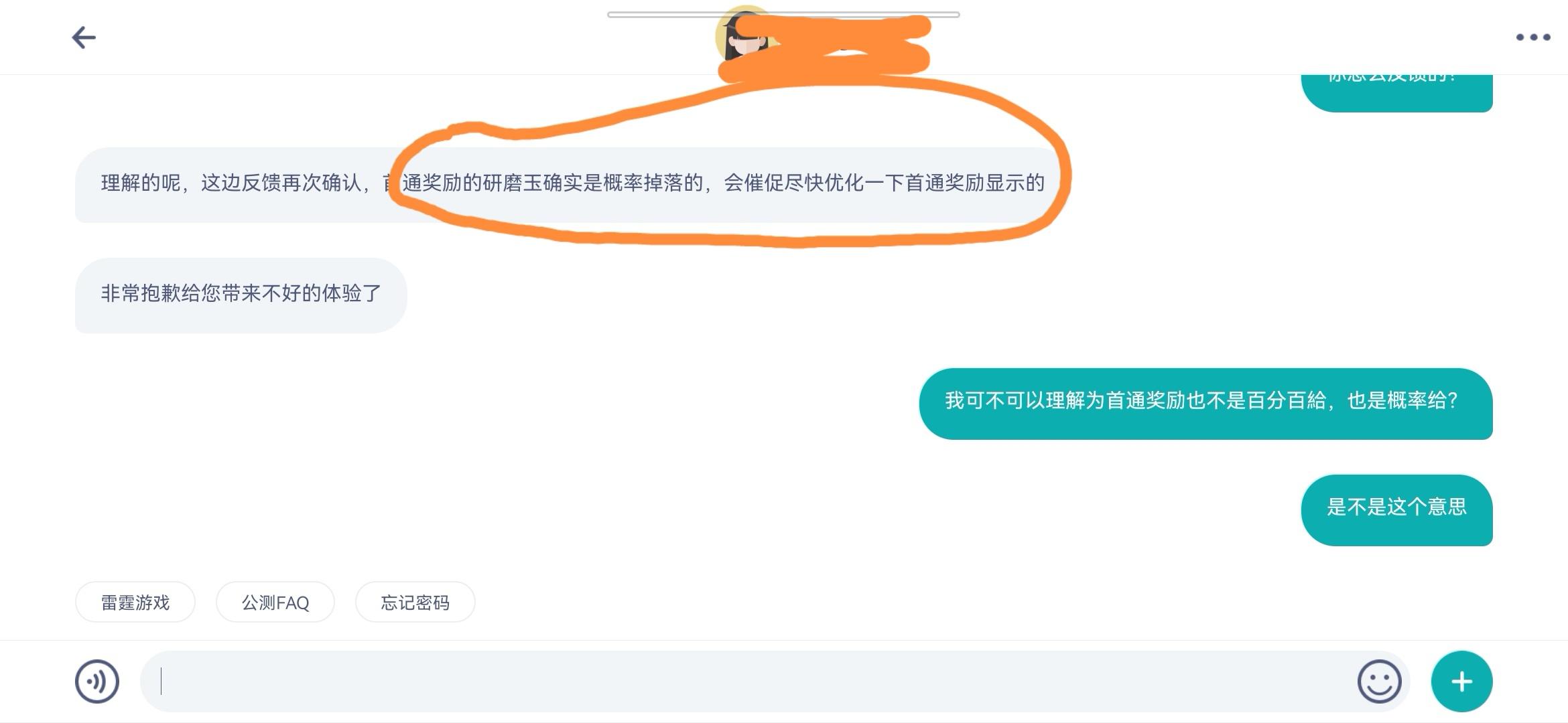 求科普首通奖励的含义😂😂😂😂我首通以后没有研磨玉。客服跟我说概率掉落,我想问一下各位大神,到底什么是首通奖励,这玩儿意也随机吗😂😂😂是我这几年的游戏都玩儿错了嘛