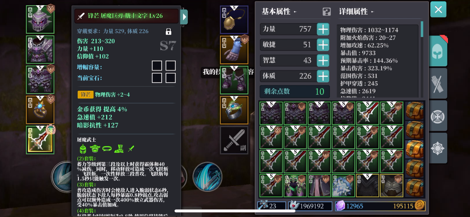 屠魔下限即上限,神化词条蓄力无蓄力不能同时输出,所以神化增益不大,想提伤害要看面板,不建议投入太多资源神化了😓