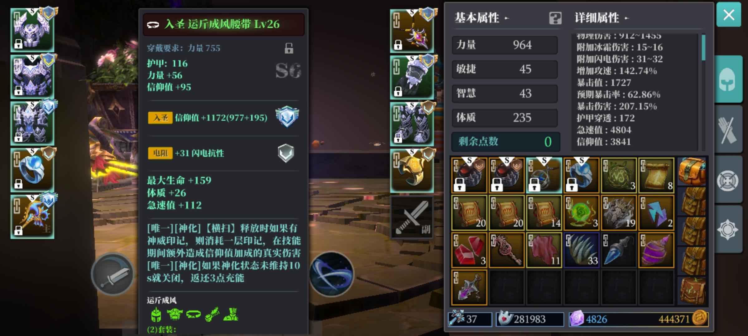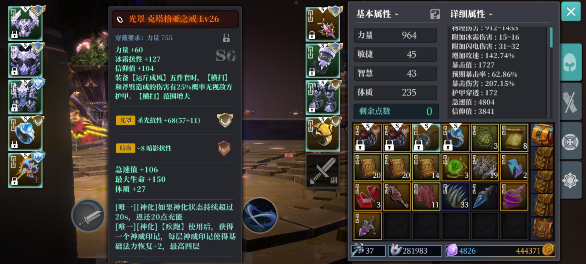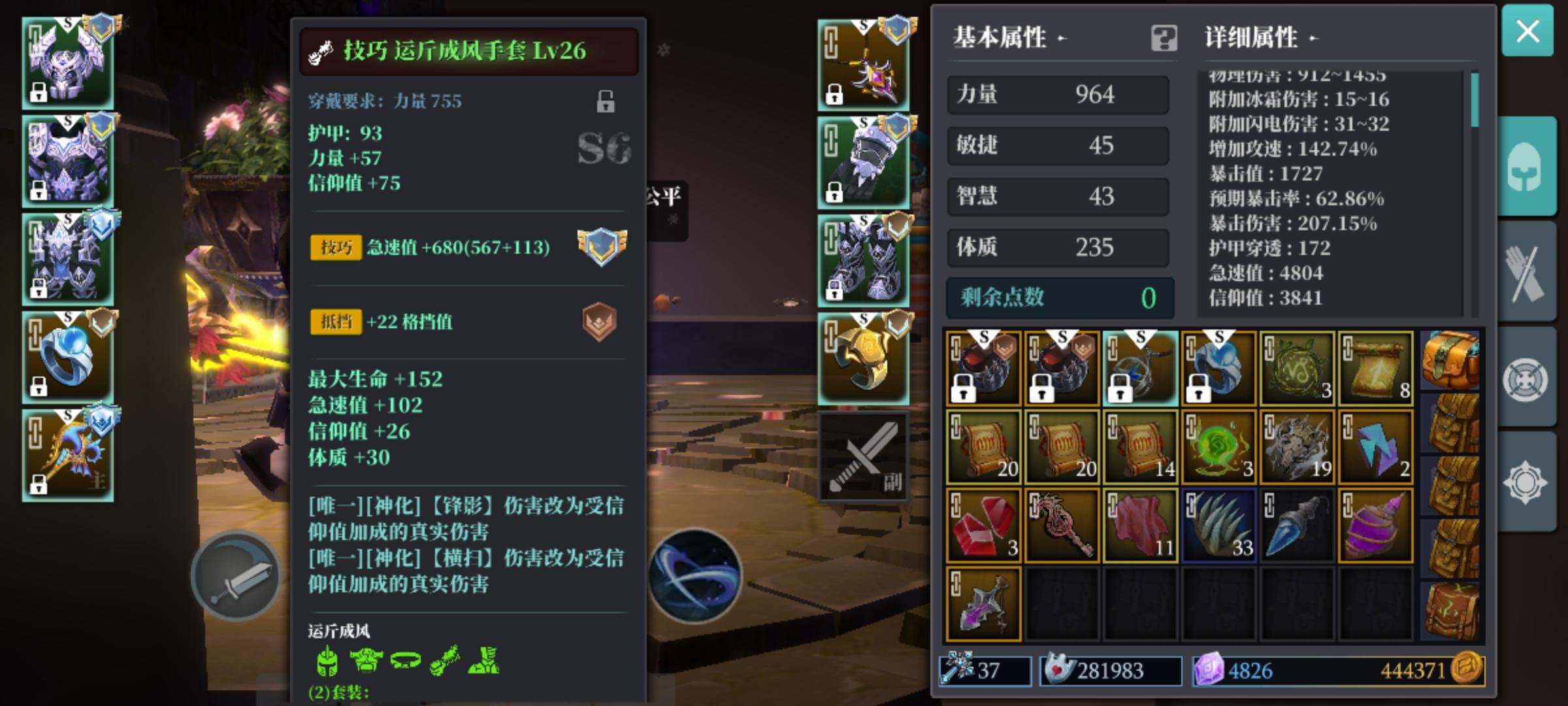 对于我这个玩了两个多月的新人来讲,我感觉已经极品了。 深渊最多只能打到18层。强化是硬伤,也可能是我操作不好,突破不了。 衔协5级。符文21。 镰刀不论强弱,都是我的信仰。