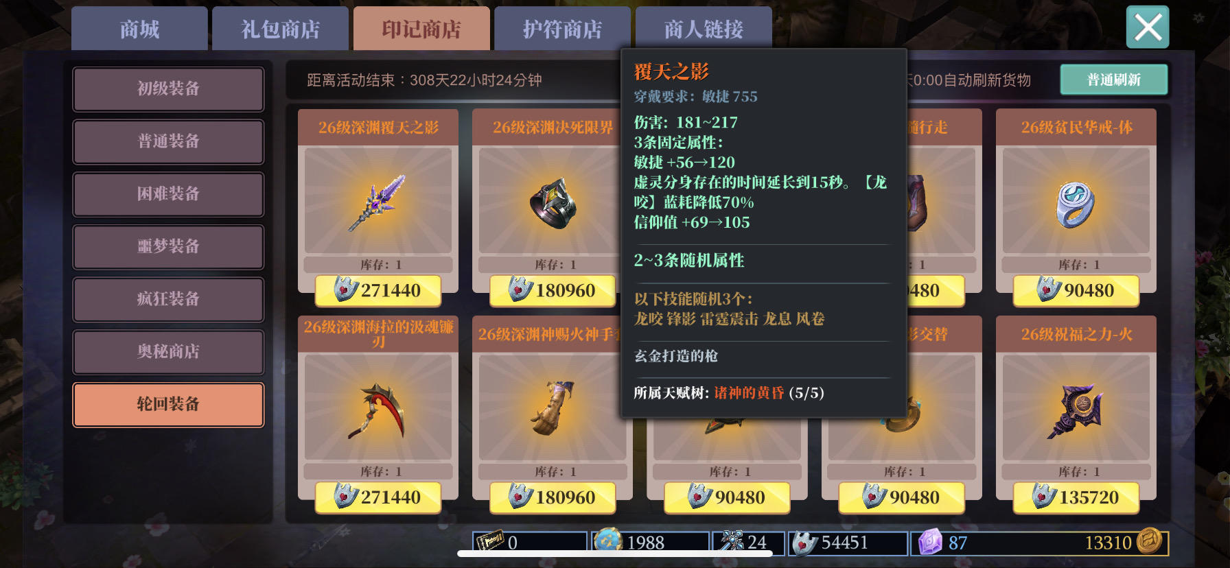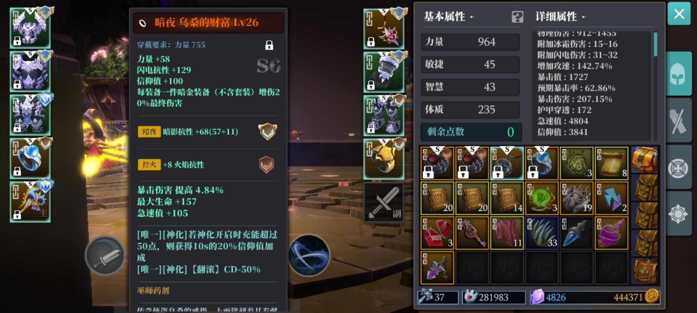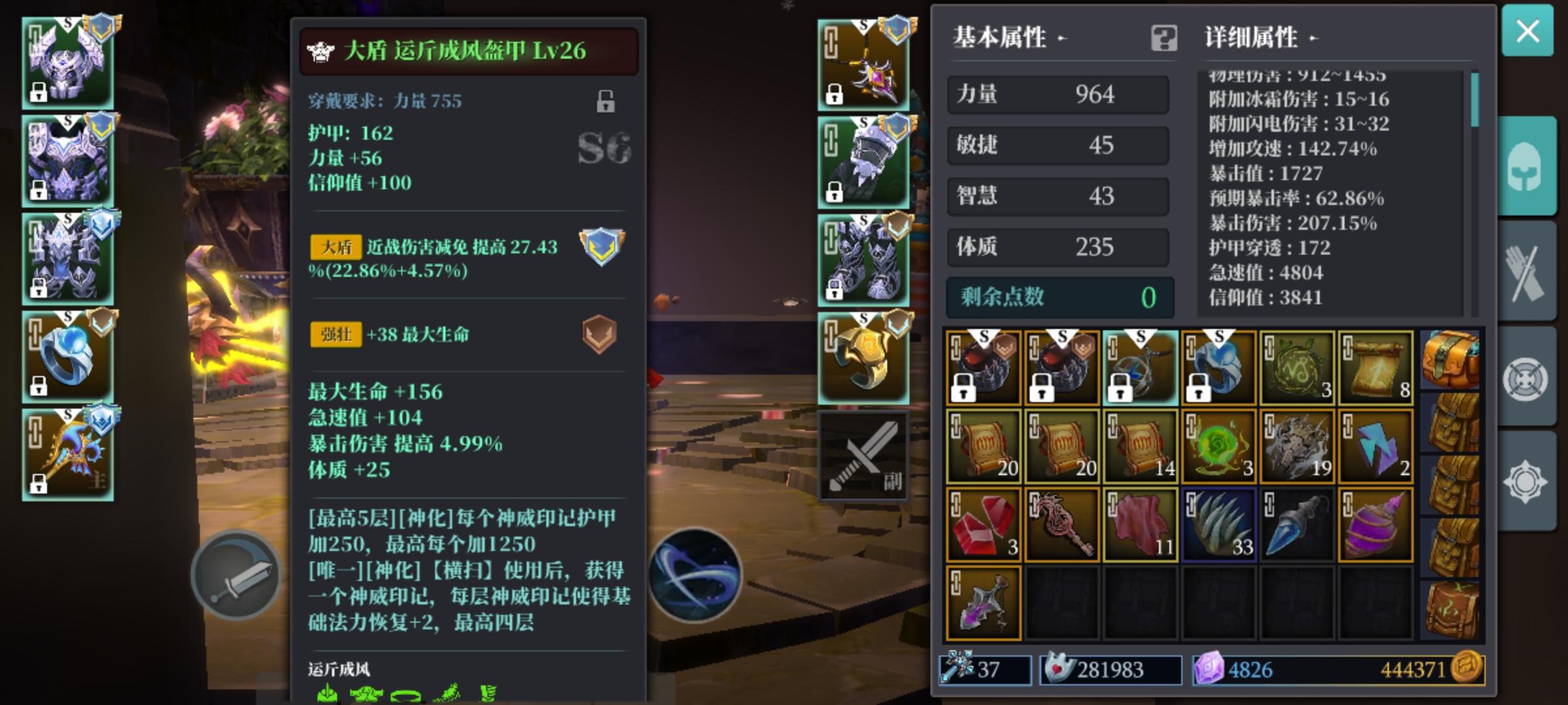 对于我这个玩了两个多月的新人来讲,我感觉已经极品了。 深渊最多只能打到18层。强化是硬伤,也可能是我操作不好,突破不了。 衔协5级。符文21。 镰刀不论强弱,都是我的信仰。