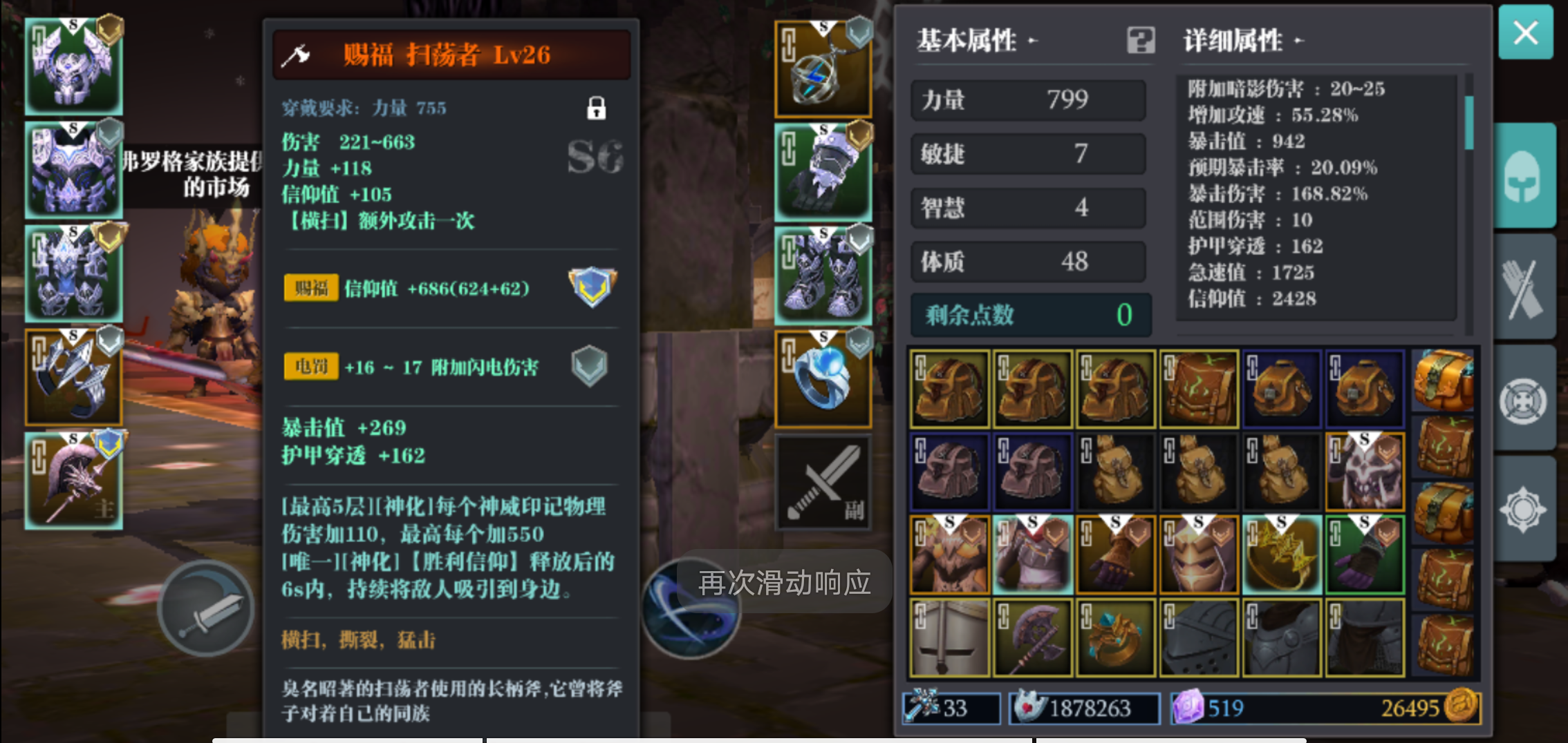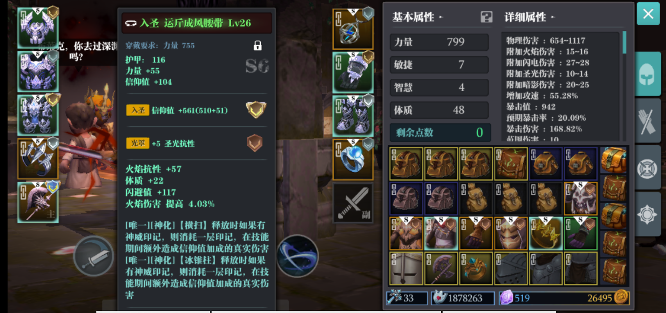 大佬们求指点,我歇菜了,玩了三个礼拜,信仰值2400,秒伤600万,过不了2-30。项链戒指是花朝兑换的,被坑了,没有神化词缀,武器一直出不了霸王,狗粮想打急速,但是太难了,10几件装备都成功不了一件。无尽能到8层,但是不稳定,难受啊!
