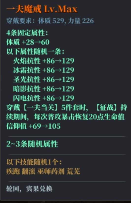 强烈建议把一夫魔戒的,征战期间,去掉,你就说一夫五套征战清零护甲现在没神化手脚的谁敢碰征战呀怪物一下就能拍死你了,一夫魔戒就这点回血有啥用,这不是忽悠人吗,神化的有征战期间不死,谁会带它呀是不是😂😂