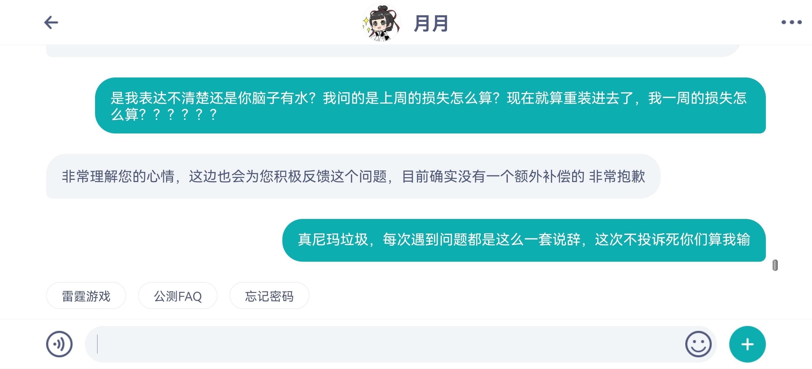 第一次如此气愤,之前反馈过N次bug,最后的回复都是目前没有额外补偿请谅解。今天周三大年初二,上游戏无尽深渊结算更新,没有收到任何反馈邮件,客服点进去也没有新的留言,重新问客服就是这么一套说辞。从第一次反馈承认有问题,到第二次反馈说会留言或邮件,到今天第三次直接告诉你重装就可以,一次比一次敷衍,受够了魔渊的客服处理问题的态度。我是消费者,我充了钱,我没享受到应有的服务。已删游,没好的回复和解决态度,不会再回来。收不到回复,会通过315、税务等官方渠道投诉,过年你给我添堵,我也不让你舒服