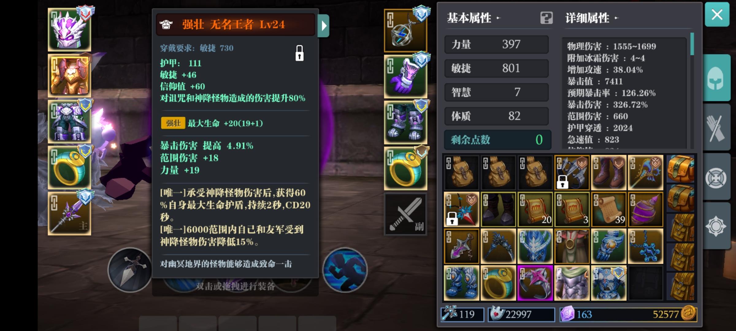 视频有些长,请耐心看完首先我这个套装洗了属性点跟范围,法盘是带的刺客大师,护符全部加的急速,带的残暴天赋,斧头天赋想都不敢想,更加站不住脚。绯红套平民真的没法玩,团本出了新项链,以为会肉一些,结果还是脆的跟一张纸一样,我不清楚项链跟手套的减伤有没有实装,但是伤害跟理论上的完全不一样。神降词条属性只有手套稍微有用一点,洗出了格挡200,其他的鞋子没有洗出急速200,也没有手套暴击两百跟终商两百