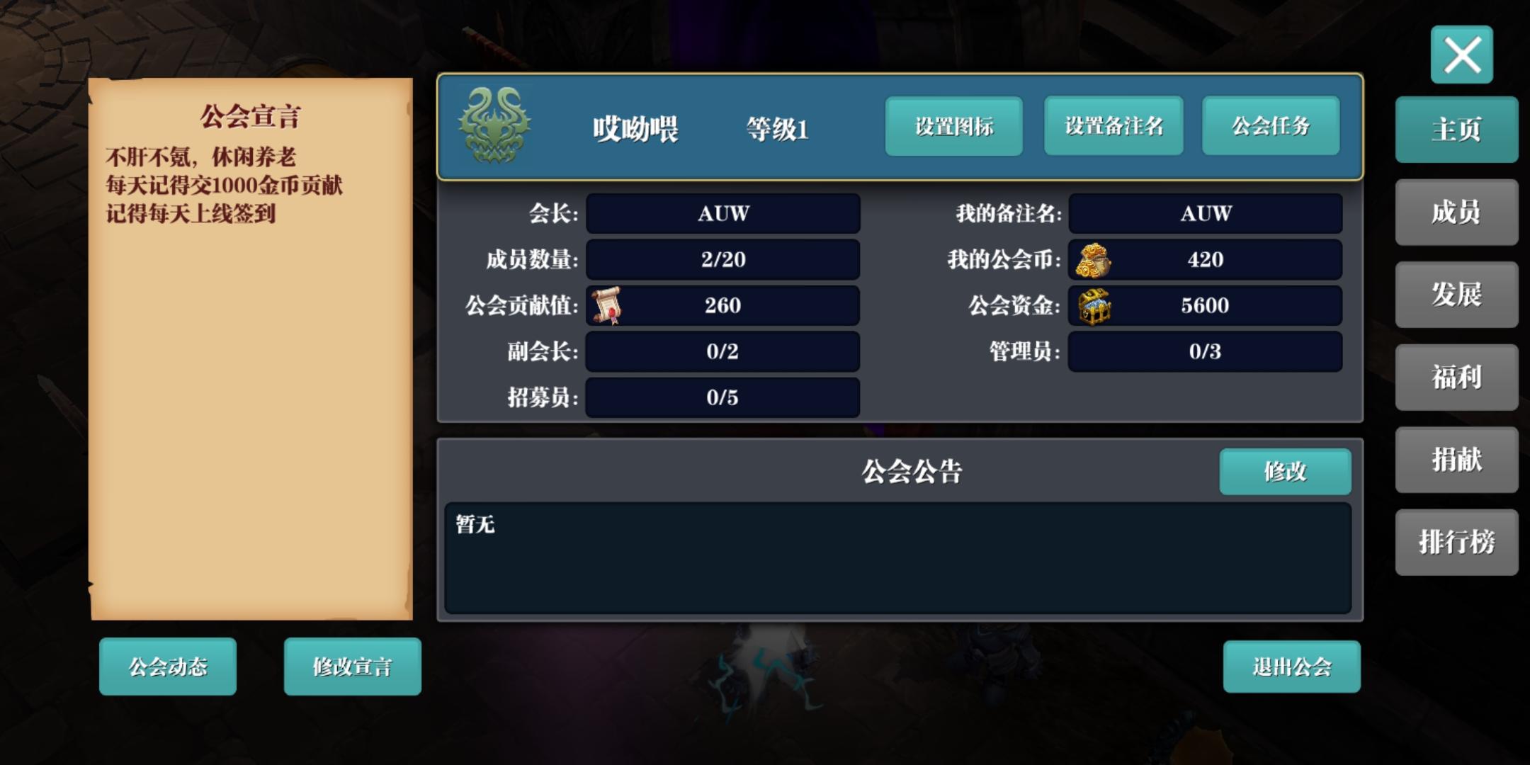 公会收人,有意者可私聊,账号名:AUQ 或AUW每天签到和交1000金币即可常驻