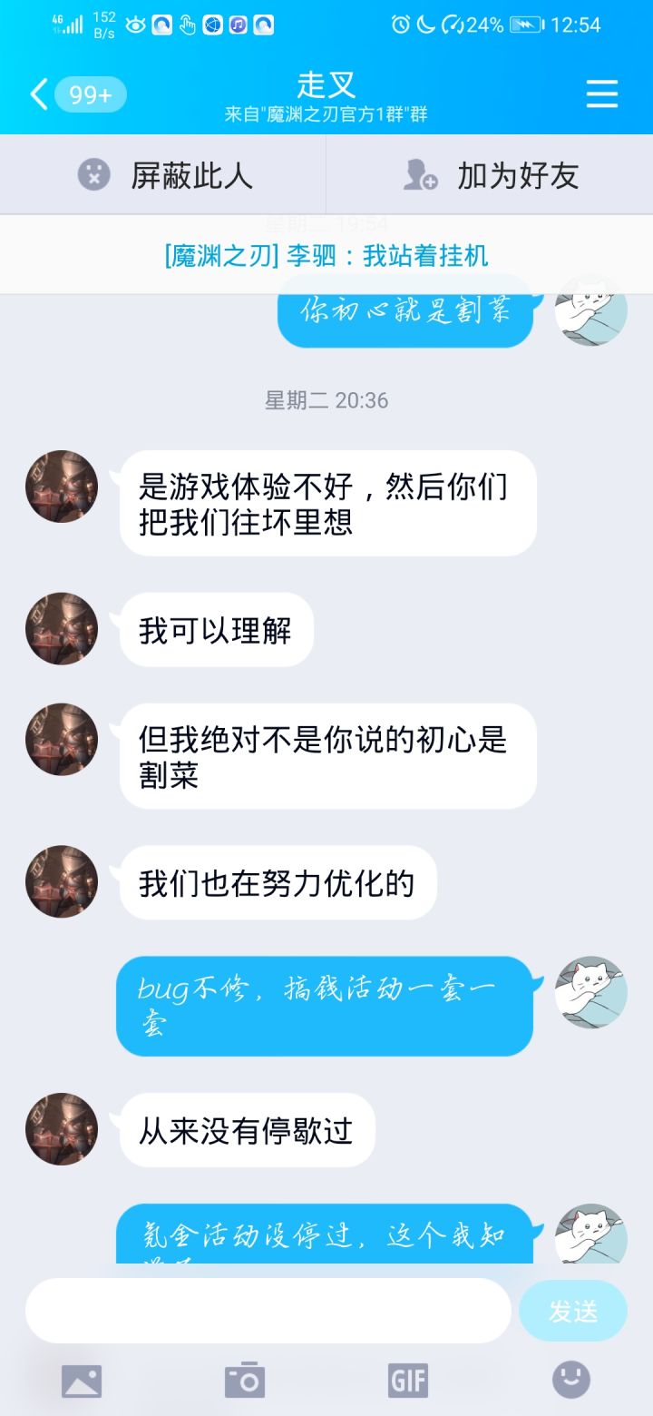 手机游戏定义,随时玩,随时放下,方便打小怪2小时打boss几分钟!我就不喷了团本消耗不起_贵游我不配玩,我玩不过走叉_魔块不共享,又把小号独立开来??那钻石小号能不能独立用?还跟我说你打魔兽团4个小时,你用手游和电脑比???最后bug早日开服,我肝没了时装图鉴就是圈钱我没说错别!把新团难度下降10分钟一局,每个职业都能打不香?更新过后,爆率感人,可能我非洲人吧打5把30 4局空