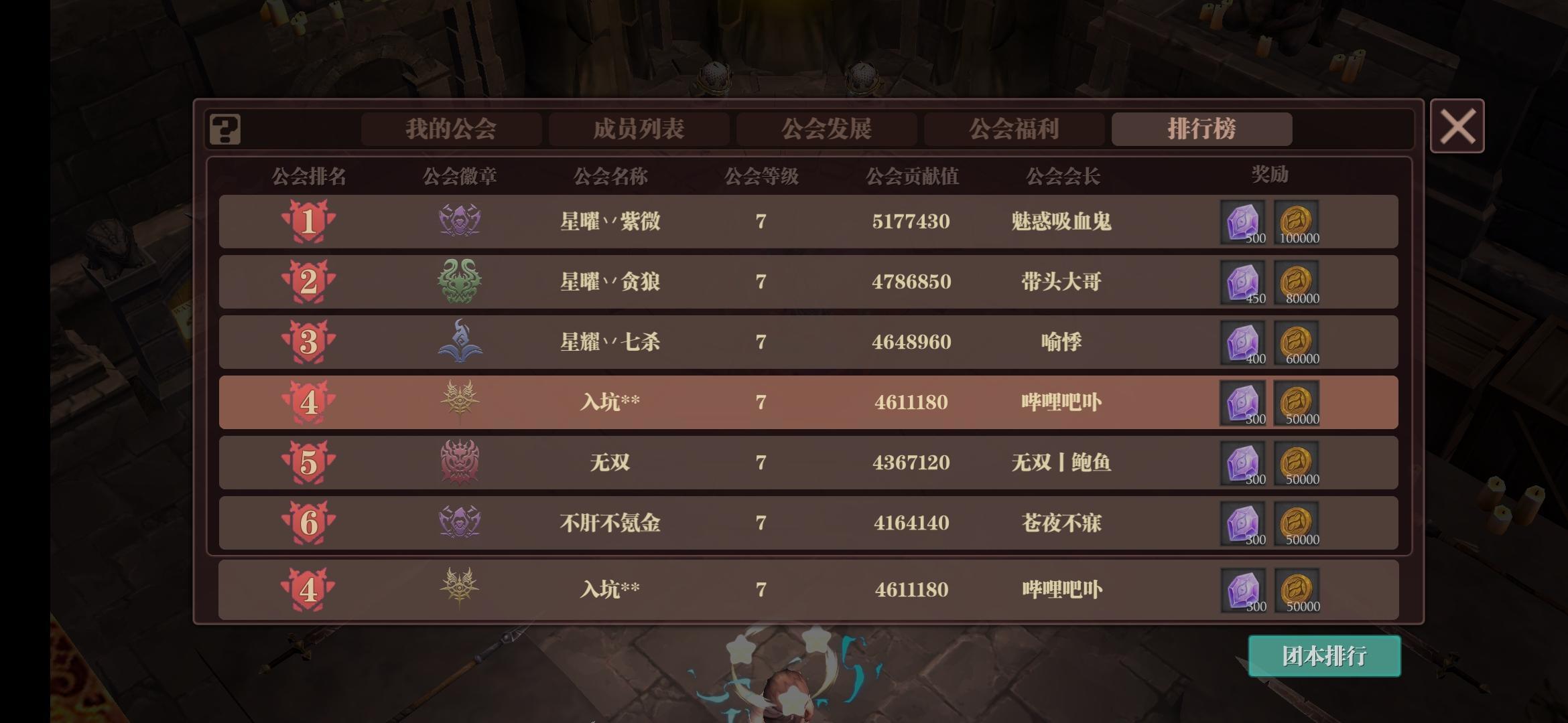 前十官服公会收人😄😄😅 恳请管理大人别限流,不要给挪到别的帖子里都没人看得到了。 公会升八级,空缺5个位置,长期保持前十公会,无钻石要求,需求金币贡献一次,并完成所有狩猎和公会任务。 公会仅招收能准时参加公会战的玩家,在此基础上,60级以上无强化要求免进,50-59级需强化至少达到上赛季天赋标准,50级以下玩家暂不考虑。 请有意愿的玩家仔细看好要求,再评论。 本人看到会回复,本公会群为QQ群介意勿扰。微信群因为不好组织人手,也不能发攻略,所以一直没搞过😂😅 🙈🙈🙈