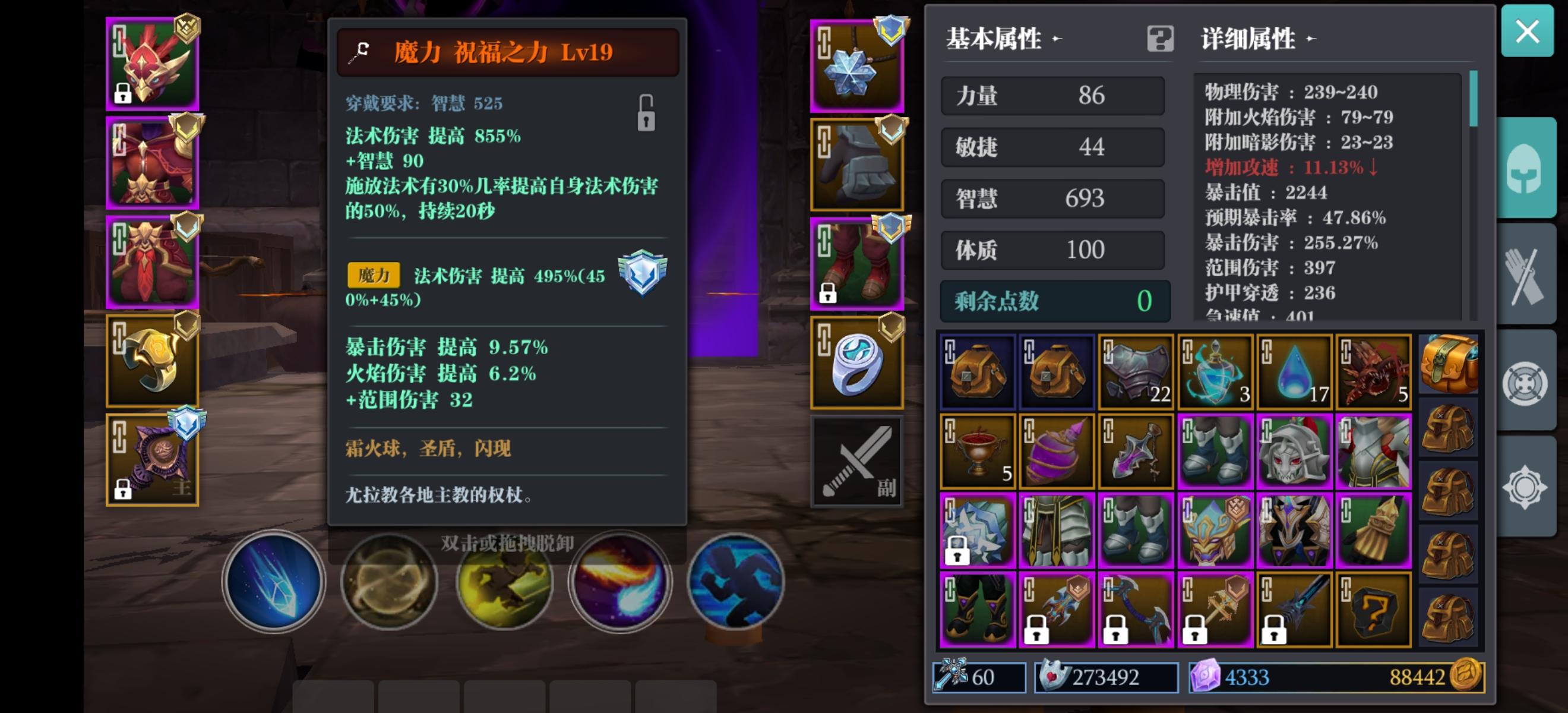 麻烦大佬帮我看下,为啥幽冥稻草人秒伤才400w+,是哪里有问题,拜谢!没有新华戒,用的贫民华戒,护符是双奥四级超负荷,范围555,火穿369魔块没有黑色全穿,所以法杖用火穿,还有个魔力的法杖