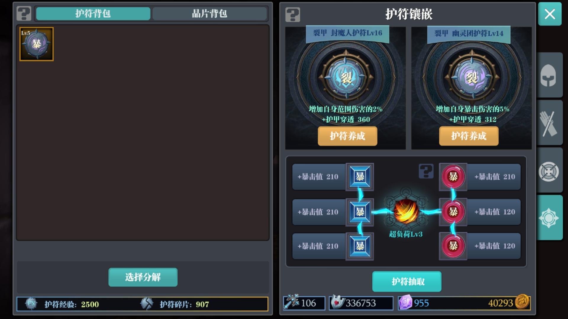 请问开车大神,护符要两个破甲?一个范围,一个暴击率的,还是一个破甲?一个暴击的😭
