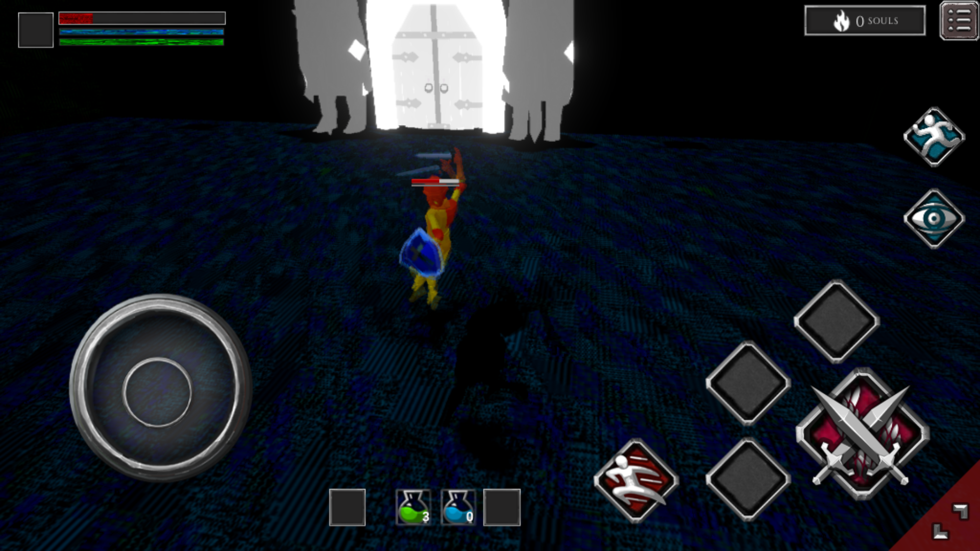 被这个游戏吓到没敢买只狼的玩家来了!之前一直不怕魂类游戏,在手机上看到这个免费就试了试,现在呢?我脑子里面连打铁声都没有,一直在回放自己被杀死之后的小动画,一次次爬起,艰难地走向战争石碑,第一个地牢,第三层,一个剑士,骑士,战士,组成的铁三角将我虐的气都喘不过来,希望作者可以加入难度选择,让我也体验一下打铁的快感吧!