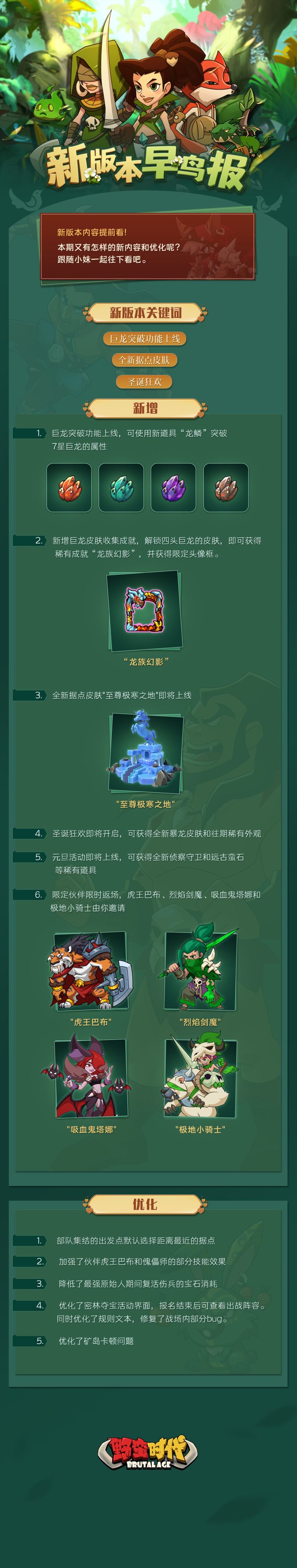 【新版本早鸟报 | 巨龙突破功能上线!还有全新据点皮肤准时和大家见面~】亲爱的首领大人,游戏即将迎来新版本更新,小妹为大家提前打听到了内容,快来看看吧!