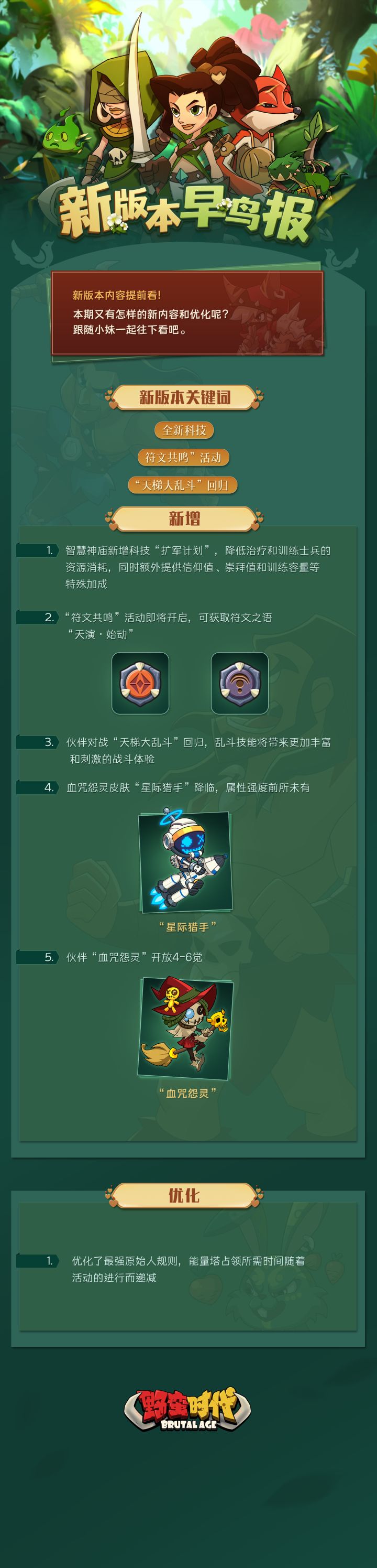 【新版本早鸟报 | 智慧神庙新增全新科技,更有血咒怨灵上线史无前例强度新皮肤!】亲爱的首领大人,游戏即将迎来新版本更新,小妹为大家提前打听到了内容,快来看看吧!
