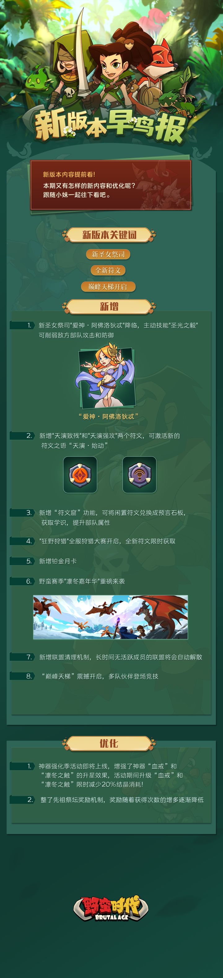 【新版本早鸟报 | 新圣女祭司即将降临!全新符文、全新赛季、巅峰天梯重启本次统统上线!】亲爱的首领大人,游戏即将迎来新版本更新,小妹为大家提前打听到了内容,快来看看吧!