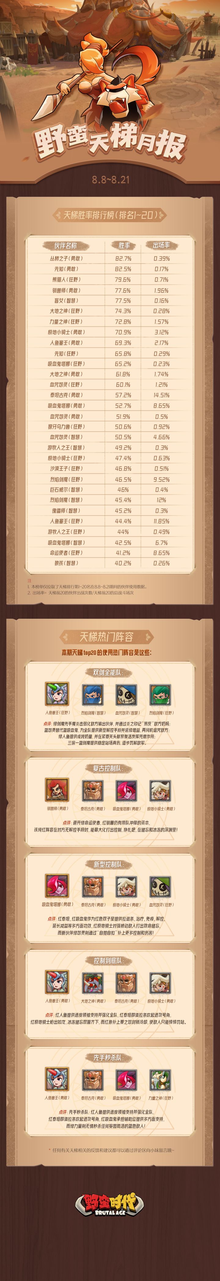 废话不多说,我滴首领大人们快来看看8月天梯月报吧!~