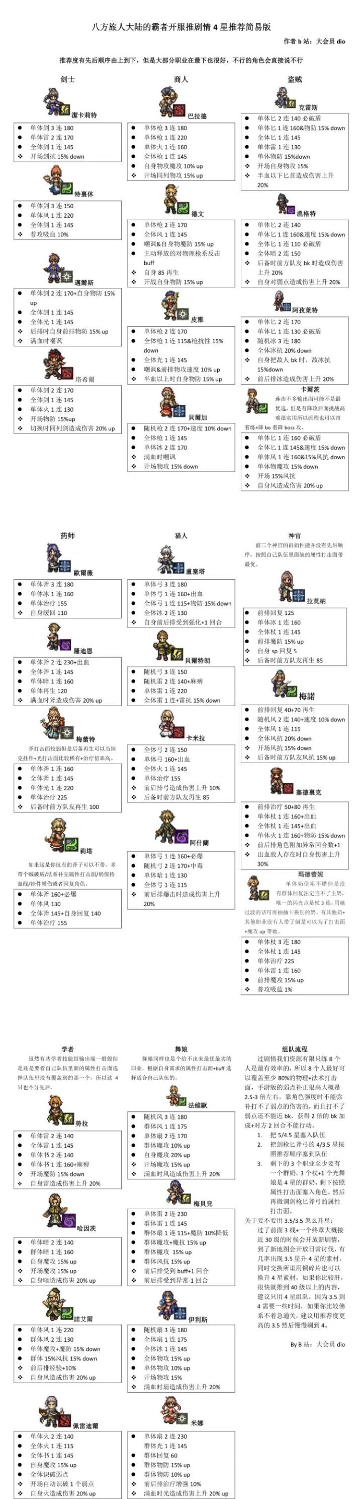 啰嗦的前言:几个月前官方开始给四星角色陆陆续续的加上了配饰,到现在所有的四星角色都有了配饰。虽然四星角色的配饰并不像五星角色那样无敌,但有一些确实是挺不错的。而这些角色的配饰一个一个找又太麻烦了,所以想到出一个列表来帮助大家查找自己想要的配饰ε(*・ω・)_/゚:・☆剑士五位:商人五位:盗贼五位:药师五位:狩人六位:神官六位:学者六位:踊子五位:获取觉醒石的地方:希望能帮到大家