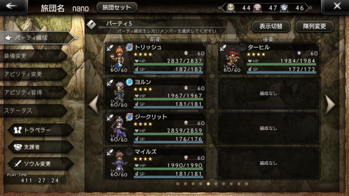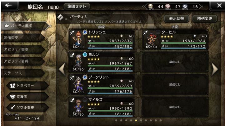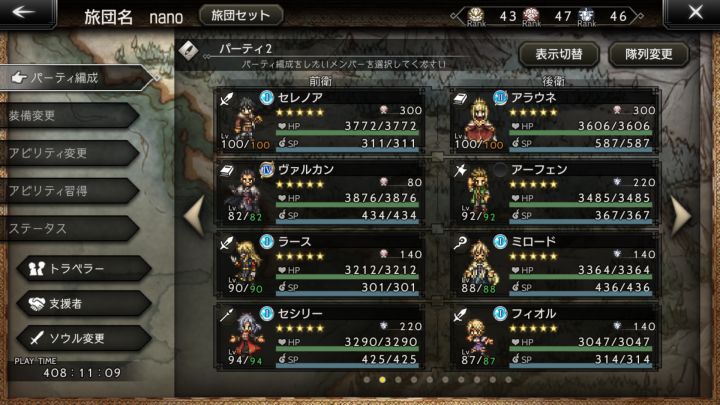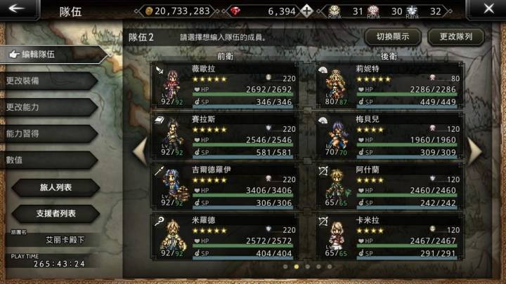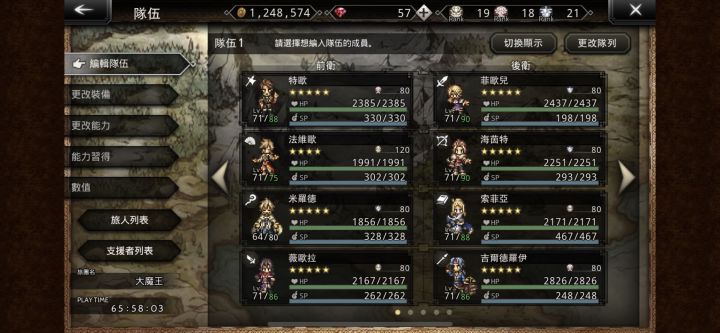 全蓄力技能1回合杀,因为个人缺火角色,碰到蘑菇怪要俩回合杀。如果快打完SP传回去睡一觉,在传回来。阵容思路:1位剑士(一闪,开始物攻,剑强化。后排sp减轻(相互)。无开始物攻的剑士,推荐デュラン(盗贼,光魔法。),被动开始时赋予速和攻buff(相互)。2位奶妈+全体魔法(补输出)。3位攻高的全体攻击角色(属性推荐火雷,物理应该是匕),4位学者全体雷魔法后排辅助:属防减,雷耐减,剑耐减饰品