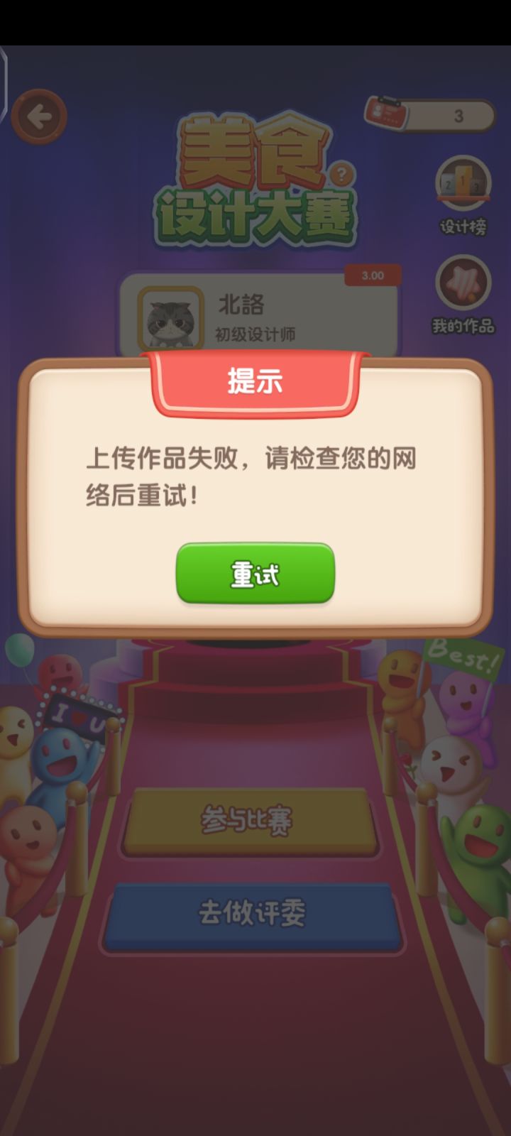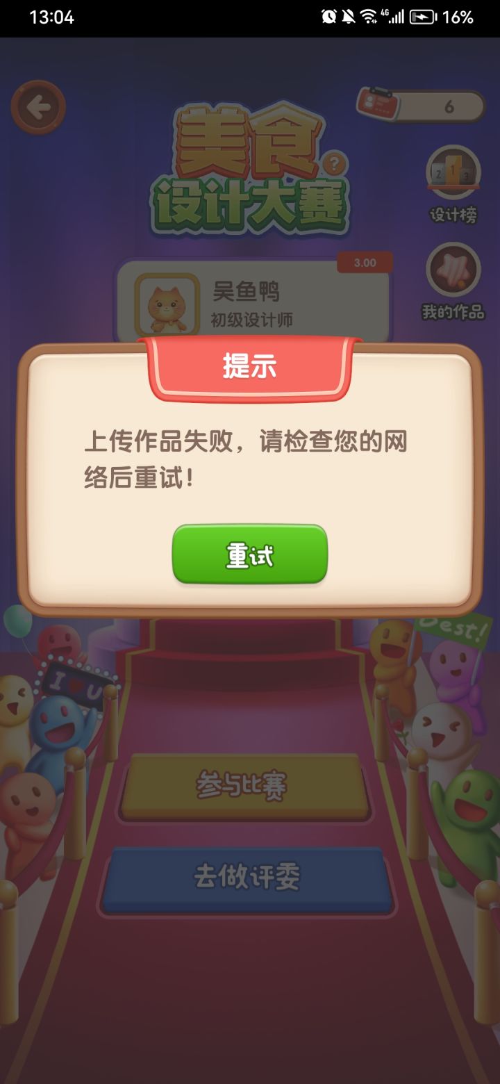 设计大赛做了作品结果提交不上去,重新做也不行,重试3次直接让我重新做,明明网络没断过,好烦啊任务就过不去了啊