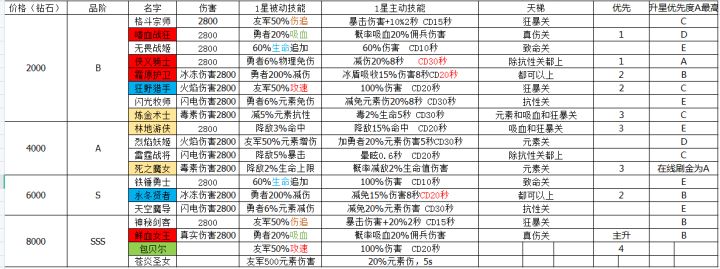 佣兵:氪不起的请自觉把秘境精华换成兑换卷,升阶佣兵,打完副本后,活动聚合旁概率出现旅行商人,在里面换碎片,升阶的数量要求:推图四小强:狭义——减免物伤,5星减100%;霜原、永冬——伤害吸收,霜原5星+永冬2星减100%;雷霆,减怪暴击率,配合神树上面右起第二个,星盘左边第一个,减暴效果很夸张。双嗜血,配合血色骑士打伤害。双攻速,主要是给女王加速,女王真伤,推图推塔很有用。这里顺带一提,