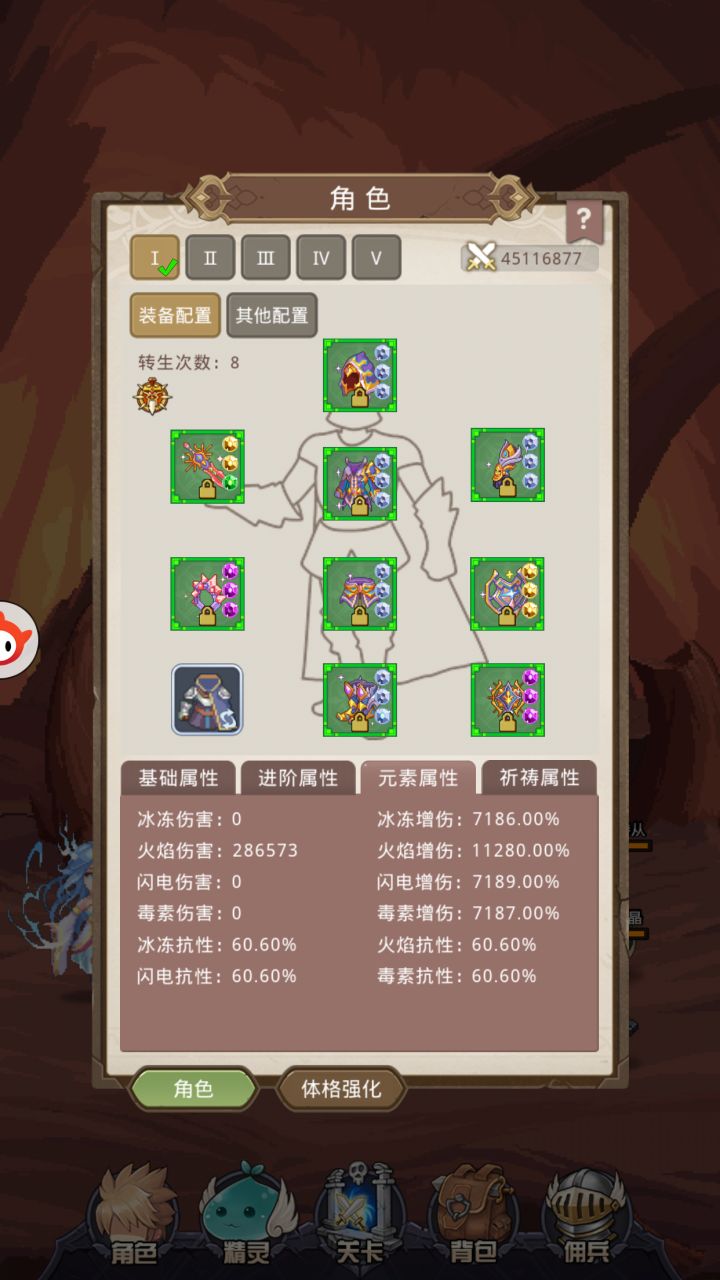 武器满级,戒指576级,鞋子500级,徽章800级,9吸血8法追5全抗1暴击4火增,商会女郎满,精灵女王满技能导师五星