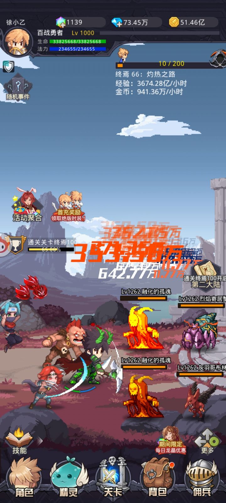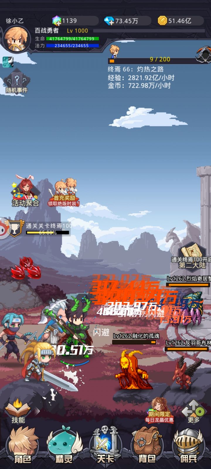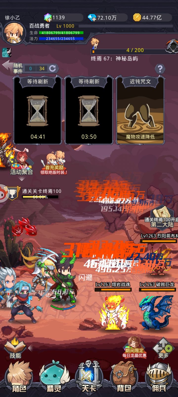玩了一个月刚出点头,一开始就当纯挂机游戏了,也没怎么去研究,浪费了好几天的火没打,体格也随便乱点了些浪费了。后来出了个终身卡,买了才开始研究了下,学习了下卡盾突然发现这游戏不一样了。说一下我的龙晶花在哪了,估计不少人猜不到,花在老板娘刷新上了,蹭蹭蹭刷的飞起,佣兵碎片也买的飞起。别问钻石哪来的,魔晶交起来,我是九级全交完基本就够用了。我的佣兵是三盾和雷霆都五级,其实狭义不需要,这里浪费了些。