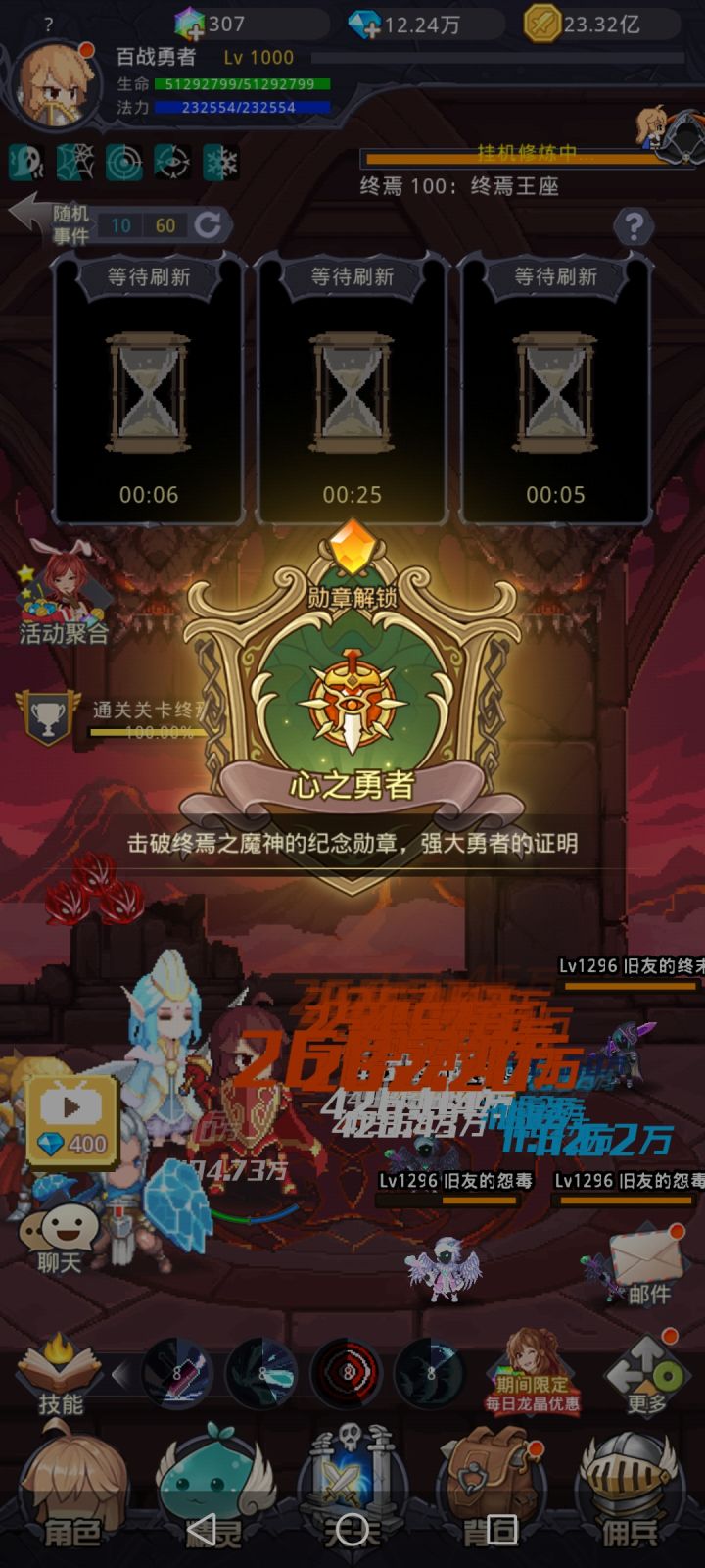 热烈祝贺「方寸」| 纷飞若兰 于2021年5月24日17点45分 通关小小勇者 第二大陆。因其本人较懒,所以带他发帖,介绍需要配置及打法。面板属性:1,操作介绍(站撸是不可能站撸的)1)提前28秒重置侠义骑士,炼金术士,进boss前上阵死亡魔女。2)然后侠义盾和炼金术士主动技能生效前进入BOSS,进入后下阵死亡魔女上阵影刃刺客。3)清除小怪后,换下增加暴击率技能,换上锤子晕,卸下分裂的