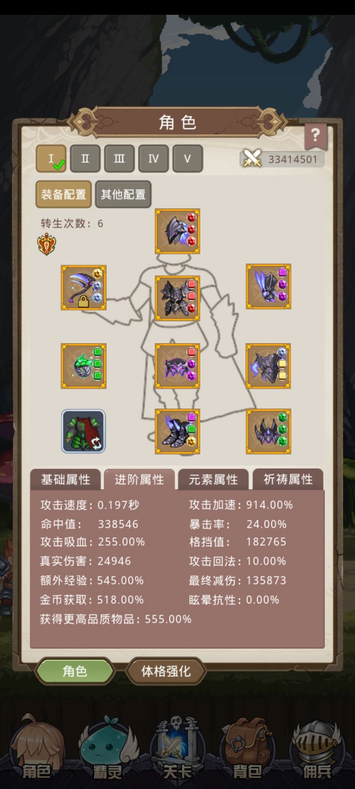 哪位大佬指点一下,卡在死神后面该怎么发展呀刚玩了这游戏八九天,跟着攻略走800套刷到一套,重铸到了4生命追加,4全元素抗性,3吸血,3暴击星盘点出了1级的血色骑士打到修罗23就扛不住boss了今天刚第一次转生佣兵到现在也只能出场一个😂现在该往哪个方向提升啊,感觉做啥都好缺钱,神树也点不动,最快挂机刷钱2亿/小时要去修罗挂机打魔晶么,还是刷钱钻石要继续重铸么,感觉像个无底洞全装绿宝石,加两个血宝宝1000w出头,迅牙脱了攻速暴击都不够了( ˘•ω•˘ )