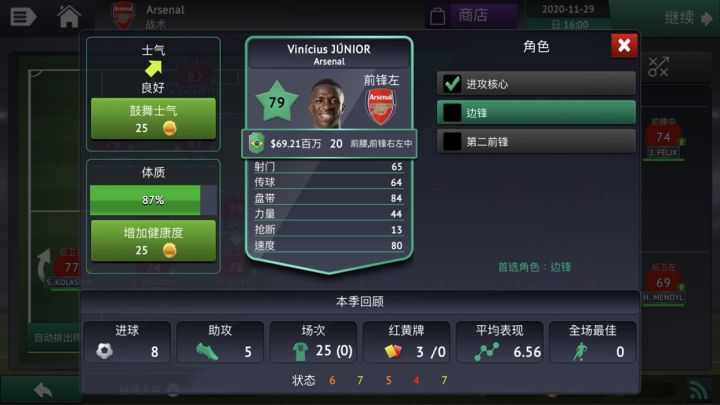 关于转会:记得开档第一天就卖厄齐尔,如果第一天85评分就收到报价,收到的转会费会比后面83评分高差不多1000万英镑,然后卖掉扎卡、伊沃比、穆斯塔法、埃尔内尼、蒙雷亚尔和詹金森。预备队除了门将租借外,其余球员全部出售以筹集资金。引进金彭贝合同年(和巴黎圣日耳曼合同小于等于12个月)3100万英镑、、扎卡利亚(合同年)2100万英镑、塞瓦略斯4500左右万英镑、本坦库尔4500万英镑左右,拉什福德5