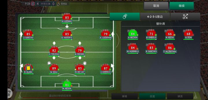 对于目前阵型来说,很多老玩家都推荐442集中,中路短传的阵型,这个我也玩过一个赛季,确实很好用,超稳,对应的位置的球员选择也多。但是对于热爱两翼齐飞的我还是回归到了边锋阵的探索上,最终打磨出了一个还算强力的战术阵容,在这里和新玩家分享一点看法,很多东西是自己瞎摸索的,说的不对各位高手多包涵。先说一下目前的队伍和最近一个赛季的成绩吧,拜仁4231阵型,整个赛季没有S/L,德甲提前7轮夺冠,输球两次