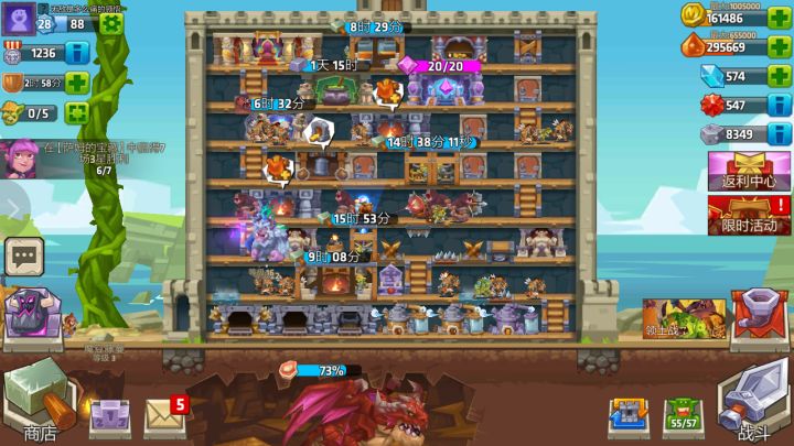 怪物城堡如何快速掠夺资源呢?怎么样才能掠夺大量资源呢?今天就为大家带来怪物城堡资源掠夺技巧,希望可以帮助大家快速掠夺大量资源。1.降勋章。以前看到很多朋友要降勋章打,这样赚的资源就快就多。我也试了下,的确打的快了,但未必资源就多了。因为级低的资源都比较少。低级别的优点:低杯唯一好处就是没人打你,我把采集放在最下面一层,没有防御都没人来偷。2.直接打高本。后来我就不降勋章,发现都是很多级高的,