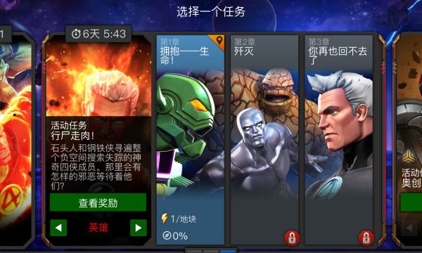 相信很多人在玩漫威:超级争霸战之前都看过漫威系列的电影或者漫画,都是这些超级英雄的崇拜者。其实在漫威:超级争霸战中也有一条充满传奇故事的任务线,这次的故事却是由我们和超级英雄团队一起踏上拯救世界的旅程。漫威:超级争霸战中的战役任务现在一共有六幕,每一幕通关之后都英雄水晶和水晶碎片的奖励,是我们前期收集英雄的重要渠道。除了通关的奖励以外,还有探索100%的奖励,每一幕都被分为六章,每一章都有不