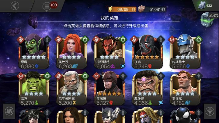 如果你是一名漫威:超级争霸战的新手玩家一定会被琳琅满目的英雄所震撼,不但有我们熟知的钢铁侠、美国队长和雷神等老牌超级英雄,还有很多电影和漫画中出现的超级反派。截止到当前版本,漫威:超级争霸战已经推出了146位超级英雄和反派人物,很多英雄有几个时期的不同版本,如我们熟知的钢铁侠就有三个版本,分别是钢铁侠、钢铁侠(无限战争)和究极钢铁侠,每一个版本都有不同的能力。在漫威:超级争霸战中英雄的突破材料