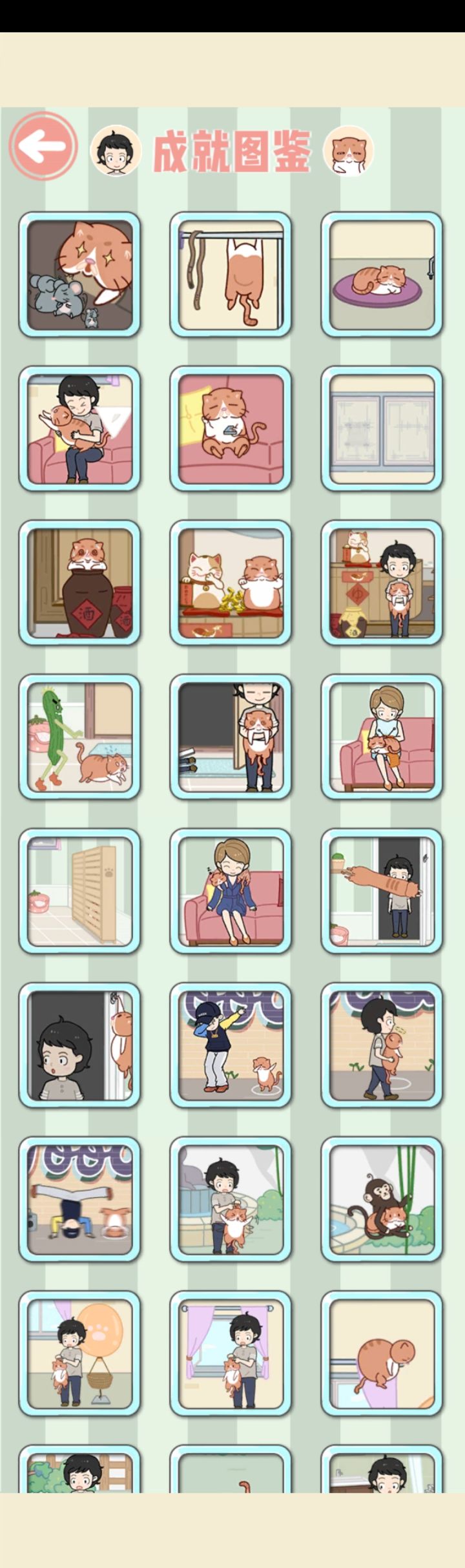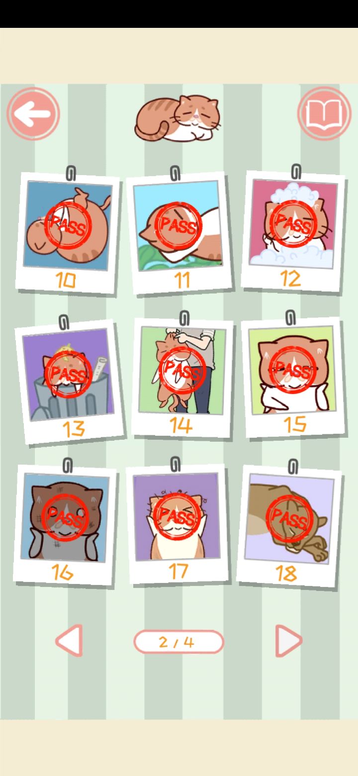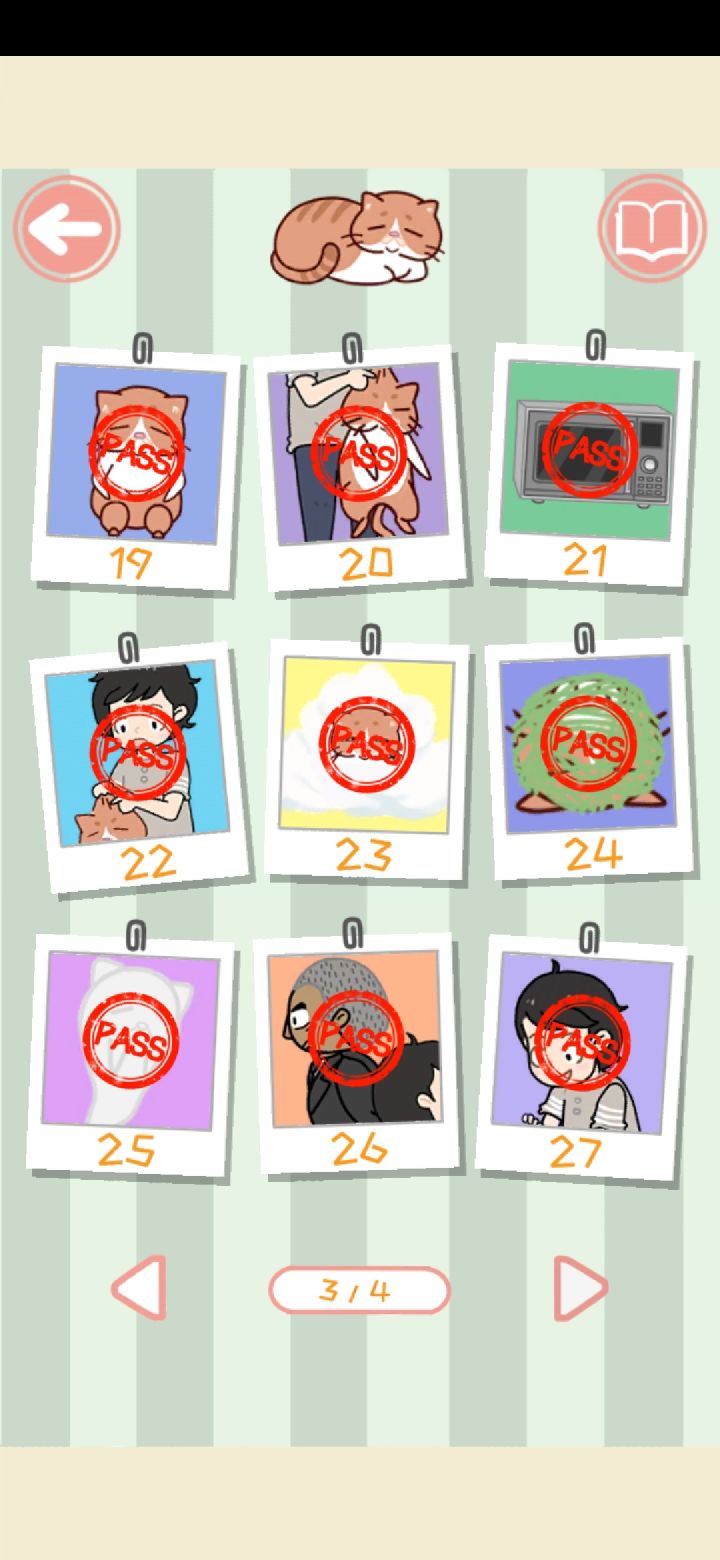 短小的游戏,很快就通关了在发现有死亡成就后开始慢慢找唔,因为是刚玩完没多久且每关的标志性都很突出所以还算清楚我缺少的成就在哪一关的唔,有些通关的方法我真的觉得很傻眼w想象力蛮高的啊ww有一些觉得…不就是撸一下猫而已嘛,不需要这么拼吧?还有一些通关的方法……猫猫你怎么这么厉害啊猫猫当然还有些……男主人你需要去看眼科了,这么明显都看不出来吗?那个有乞丐的那关……没见过猫猫看书吗!干嘛