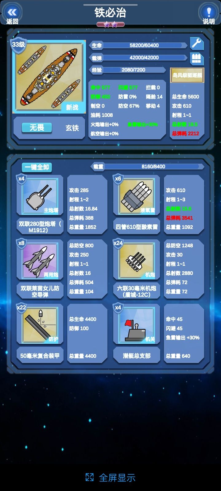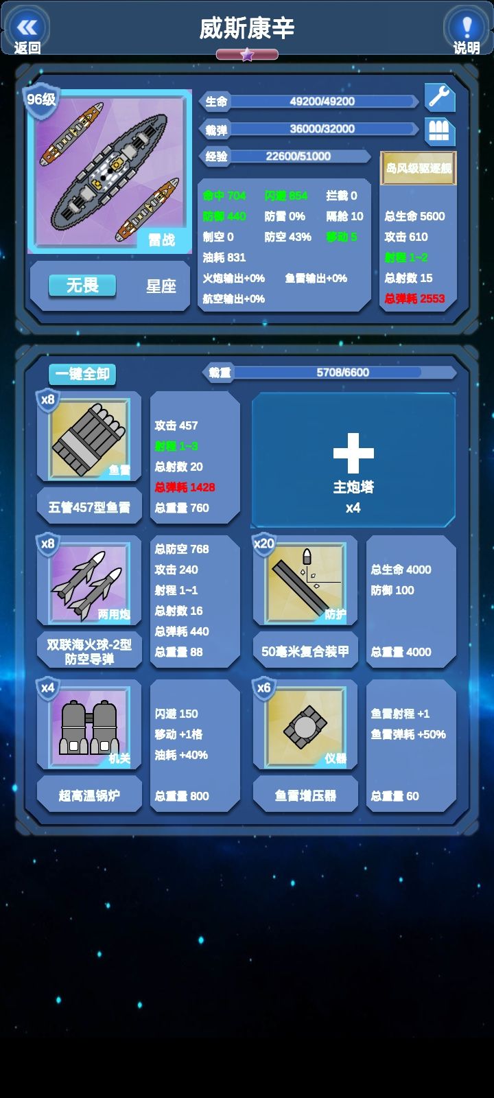 雷击战列舰的思路分享威斯康星放弃主炮换取480以下的攻击几乎都是挠痒的效果,然后逐一发送鱼雷,普通鱼雷射程短,消耗低,加上仪器位后,可同步提高护航舰的鱼雷射程。另一个典范是新战铁必治,液氧雷,防御更高,保证了对巡洋和航母等中甲的伤害。但是没有仪器位,鱼雷槽也更少,液氧雷的发射数更少,护航舰的火力不一定能得到很好发挥。