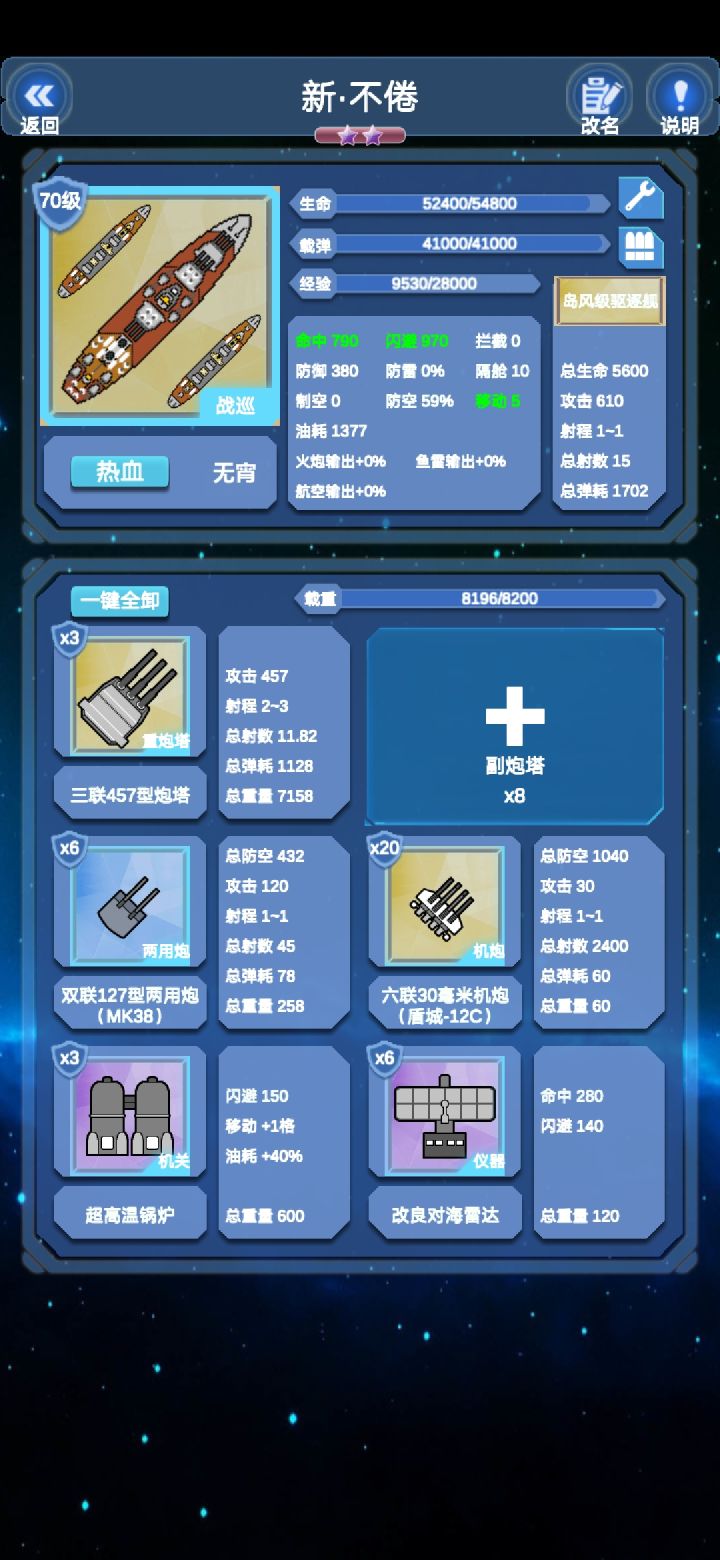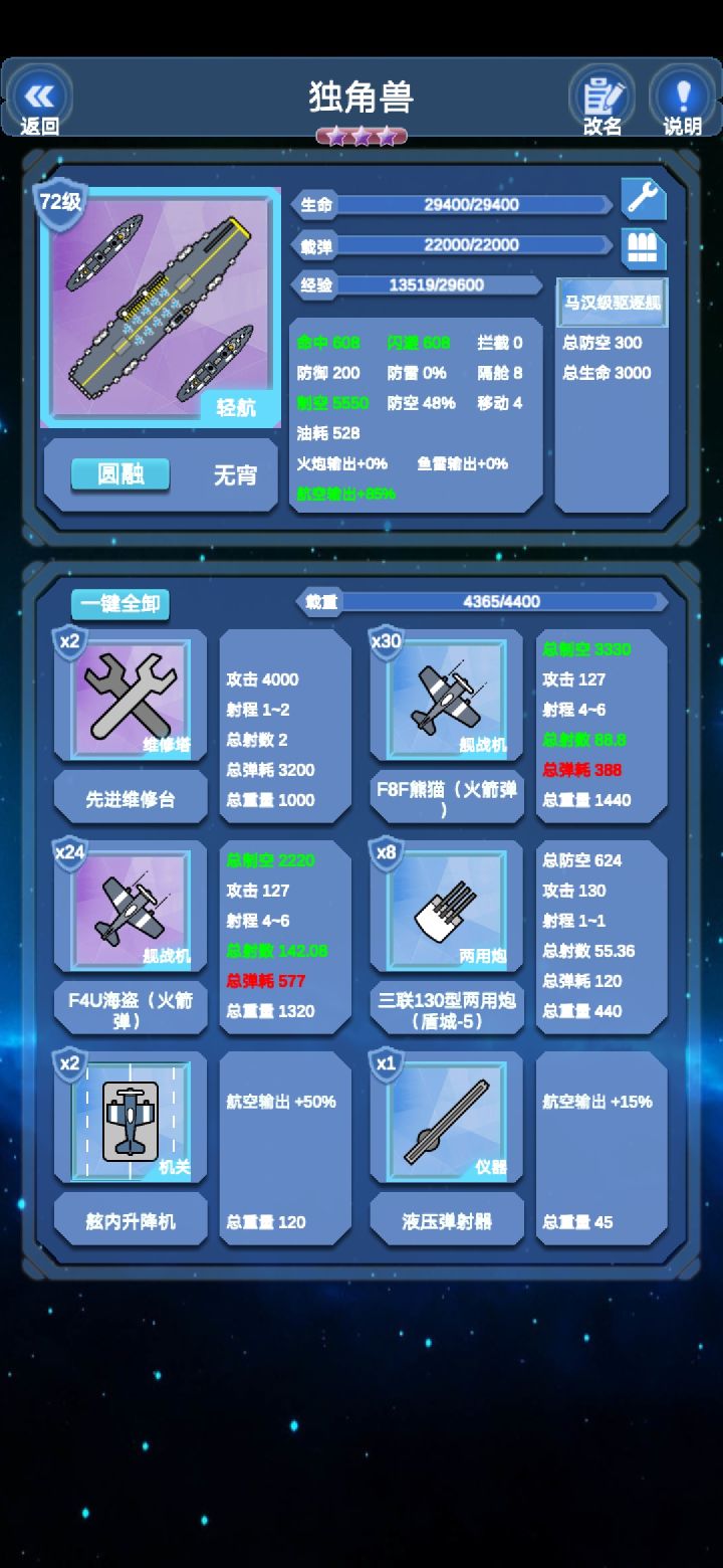 通关证明好了^0^~上干货战前准备可以看到楼主的阵容是相当落后的,没有一艘航母或超战(毕竟刚更新船的等级不够),全靠美系救我🐶命而且美系还是刚练的。这个版本美系真的厉害,马萨诸塞,衣阿华和印第安纳8500载重355的初始防御以及自带的400攻三格攻击范围的炮所以美系必练。天城可以换成别的战列但难度会进一步上升。而护卫编队随意没有什么要求。---------------------分割线-