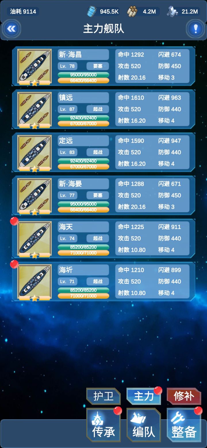 航巡:说好的护卫舰队呢?你不要过来啊啊啊整活玩法就是先把信浓货船形态放到护卫舰队,然后传承,不过记得別拿出来,之后就放不回去了还有比如小星座,列克星敦,萨拉托加,企业,约克城,皇家方舟,vv之类小船变大船也可以这么玩,提前规划好,就可以拥有两个主力舰队