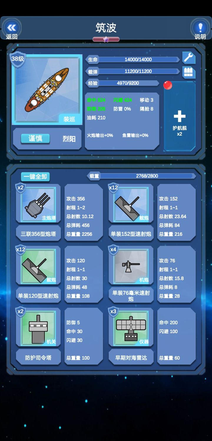 同样身为还在用古董炮的老式装巡,这玩意不但有强大的炮击和雷击能力,甚至连防御也轻松堆到了230,除了美系装巡几乎没有防御比他高的了。