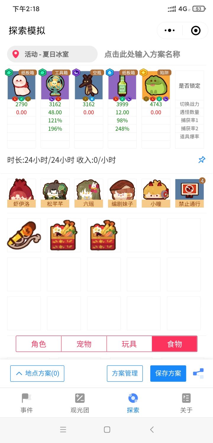 因为本人零氪,并且是萌新没有玉抽取沙漠池子,美食星的活动也没有抽,所以本人的方案有很大的进步空间。本方案主要是抛砖引玉,勾出大佬完善!下面开始本人目前的配置 6.5小时抓8