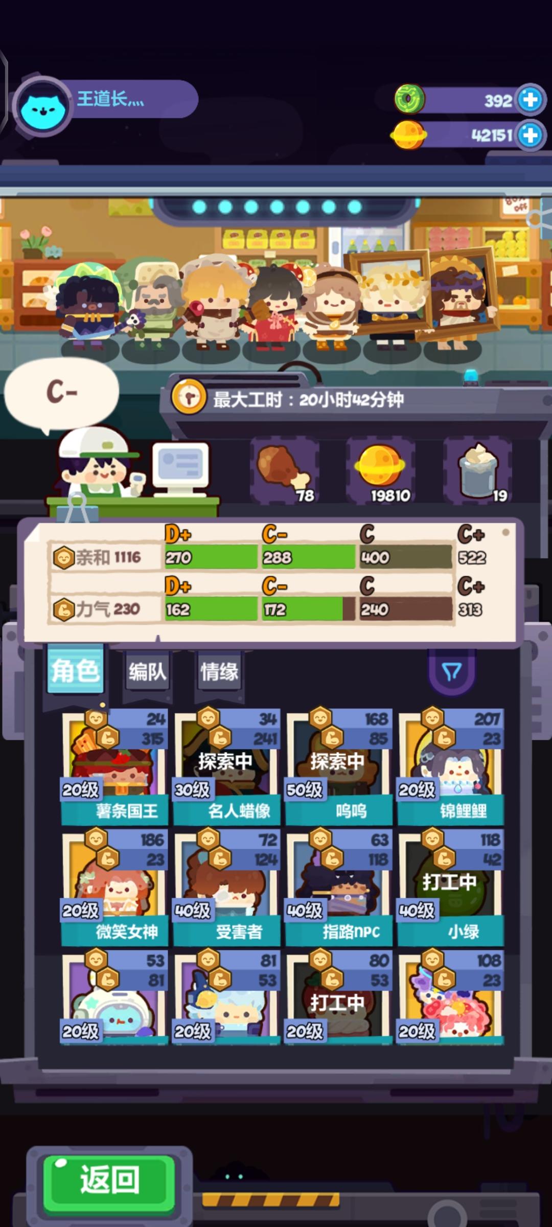 首先四个打工点道具 技巧+亲和超市 亲和+力气警察局 力气+智力事务所 智力+技巧打工金币加成单角色居民npc 23%兵马俑 8%原始人妈妈 15%(和原始人爸爸一起)报童 15%棒棒糖女仆 8%休休 10%情缘棒棒糖女仆+咖啡女仆 10%打工食物加成咖啡女仆 8%读者 15%阿宁 10%情缘报童+受害者+调酒师+房东太太 30%打工捕捉道具倪不染 10