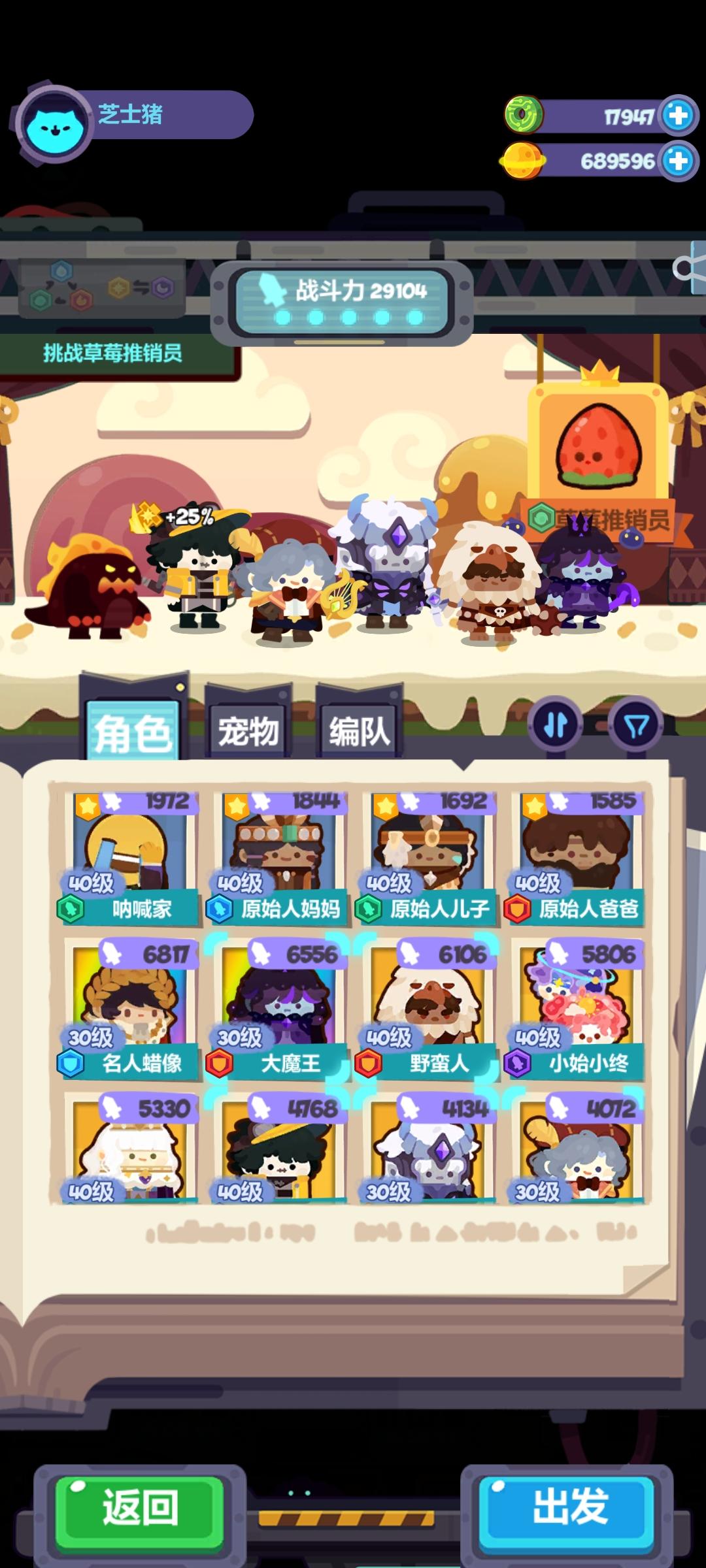 三阶40级呜呜,满阶满级村长夫妇,三阶40级弓箭手,二阶20级火枪手,四级普通宝箱队伍换来换去,最后发现夕阳红,这个情缘是真好用技能全激活,弓箭手那个闪避的道具升十级,还有的呜呜也是十级。
