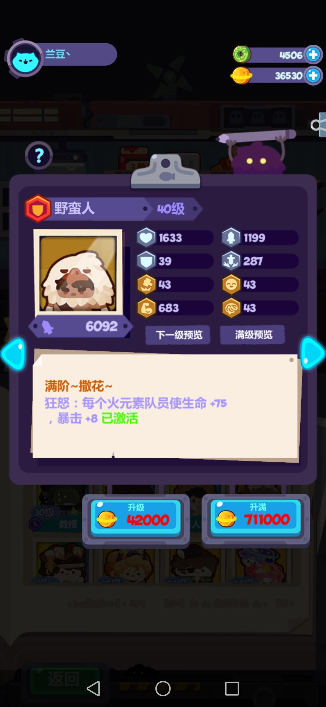 1. 一些人物的技能描述是“每个xx队员使xxx增加xxxx”,比如大魔王和国王,这描述读起来真不好理解,建议在“使“后面加上宾语,比如加上“自身/全队等”,这是主谓宾不全的语病。2. 战斗前的选人界面,图中这两个地方靠得太近,想点boss看详情却常点到上面一点的任务按钮,任务往左弹出来后就会挡住boss,操作很不方便3. 呜呜的动作调快点,看到他左手一个慢动作,右手一个慢动作,花儿都谢了