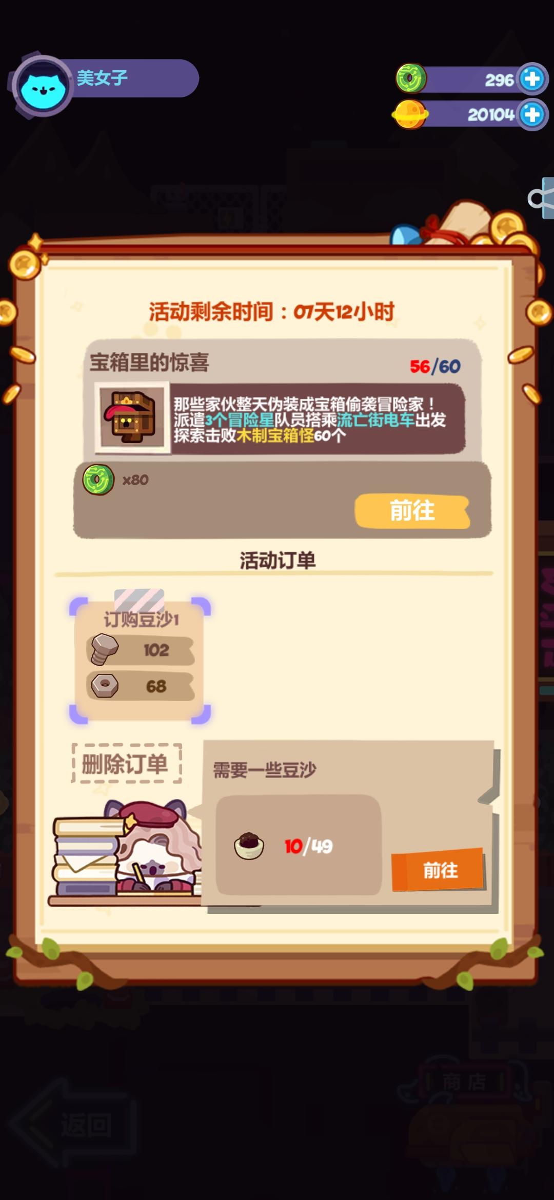 解决订单问题有个很简单的解决方法,既可以满足妙奇制作团队的时间等待需求,又能满足玩家的自选订单目标与订单所需物品需求,即:自动刷新让订单自己刷新,玩家按照需求设定自己想要提交的物品,数量范围及订单完成的奖励若订单下次刷新没有刷新出玩家圈定范围内的订单则自动刷新掉,直到刷新出目标范围内订单为止若订单刷新出目标范围内订单,则锁定,以等待玩家提交,如此,既花费了时间,使得订单刷新需要时间的