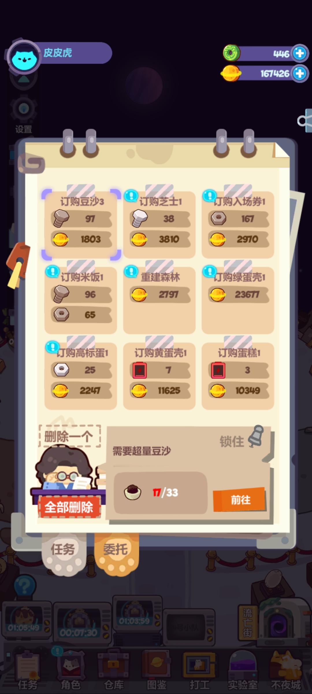 打工就差3个红电池升下级就s+了 只有海鲜酱 不断刷新 不断刷新 七八次了 就是出不来合适的委托 出的都是我没有的素材 还轮着出 没有的素材干嘛刷出那么多次?