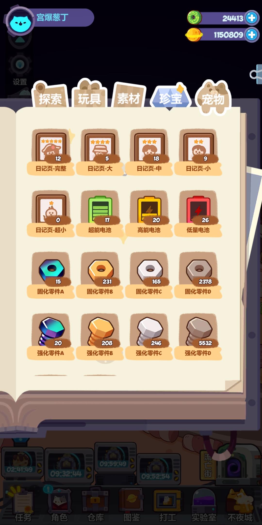 大家来晒晒零件库存吧(这游戏需要零件合成)委托已经这么难刷了,有时候为了把素材用掉,拿点金币,就把D级零件委托也交了。作为开服玩家,目前阶段没有什么蓝白卡打算养,这零件去哪里花呢?实验室能不能开放个零件合成,C级很缺,D级用不上啊