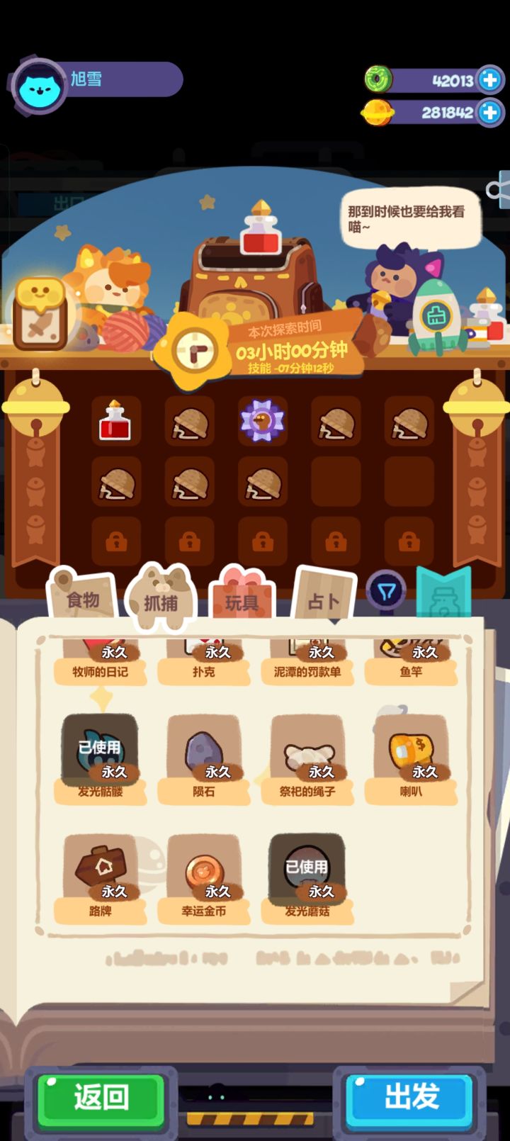 做了一个占卜任务,放8个事件物件,签筒,发光骷髅,发光蘑菇不见了,一直处于状态,多次与人工反馈无反应