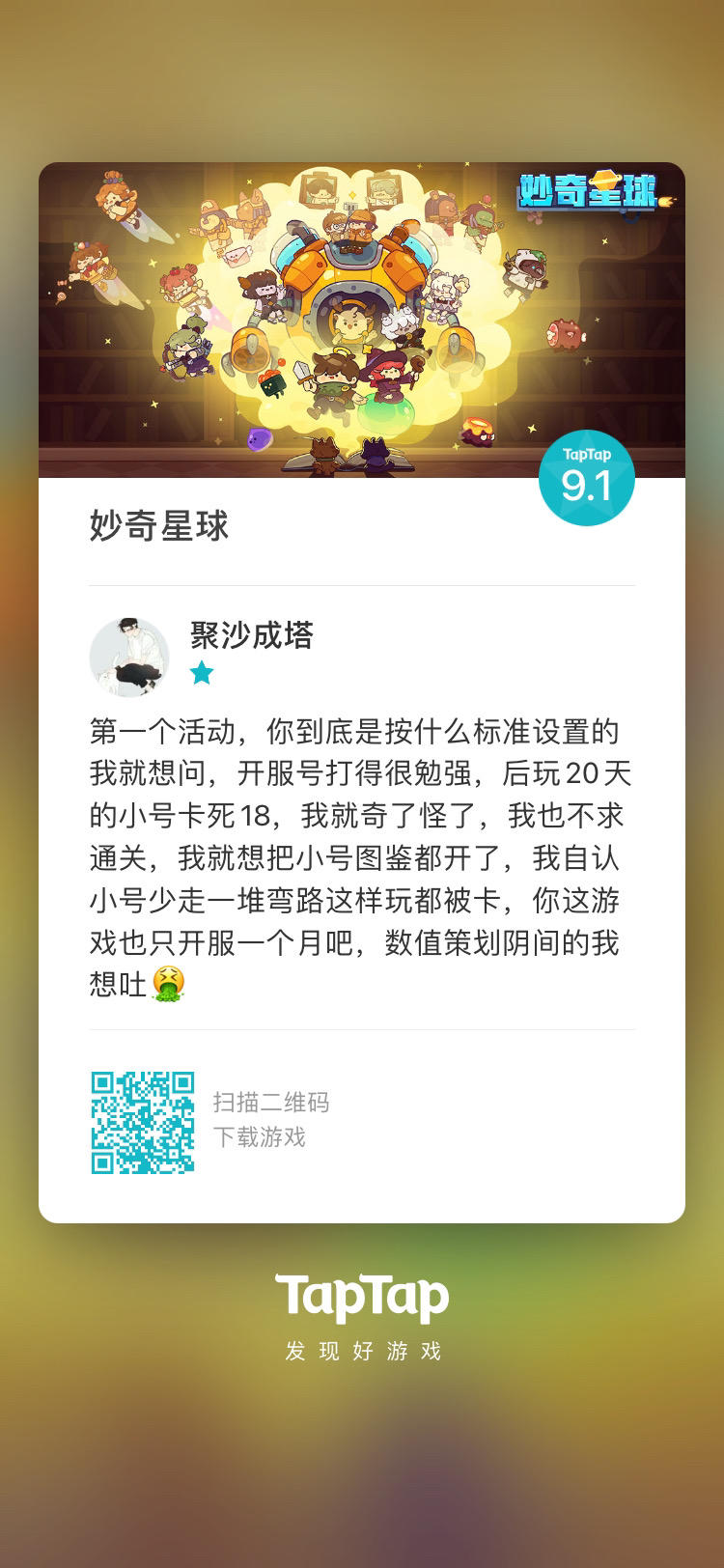 各种加打工时间的情缘在挂机时间超过12小时之后就很鸡肋了,何况打工7级基础18小时 单纯的加打工时间没有任何意义 单位时间收益不变建议改成单位时间收益提升 如18小时挂机获取24小时资源量而不是可以挂机24小时毕竟一个挂机游戏一天收一次菜都做不到就别玩了 18小时完全够用了---------------------------------在补充一句 按照设计者角度理解 拿每个人都有的7糖豆